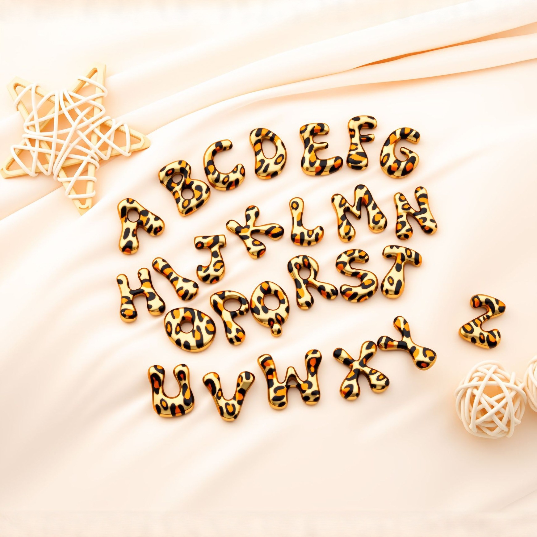 跨境钛钢金色豹纹气泡26字母穿孔吊坠DIY饰品配件不锈钢DIY配饰