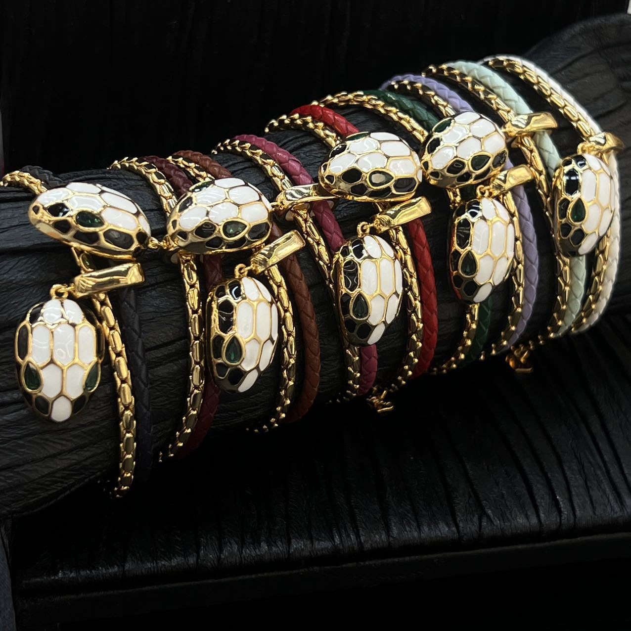 高版本命年蛇年限定经典蛇头小牛皮编织红绳双层灵蛇个性手链情侣