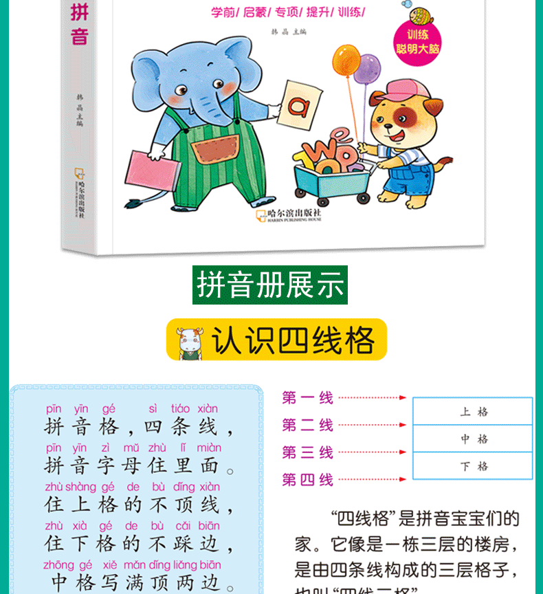 ピンインの小さい連絡の練習帳は毎日幼稚園の大きいクラスの練習帳の1学年の中国語のピンインのアルファベットの本を練習します。