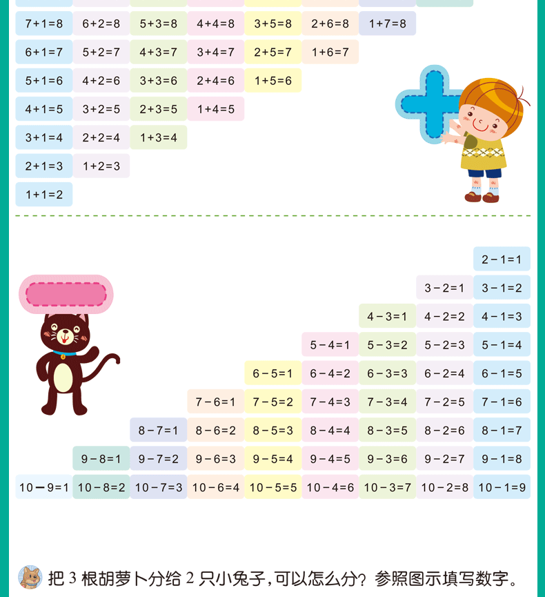 全横式田字格口算問題カードは毎日幼児を練習します。