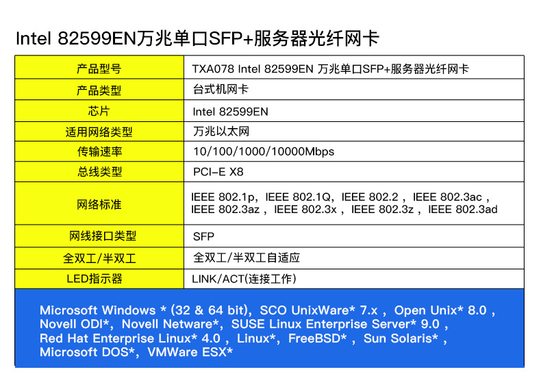 [シングル電気ポート 10G] TXA074 [AQC107S] PCIeX4 ネットワークカード,[シングル電気ポート 10G] TXA189 [Intel/X550AT] PCIeX4 ネットワークカード,【デュアル電気ポート10ギガビット】TXA085【Intel/X550AT2】PCIeX4ネットワークカード,[デュアル電気ポート 10 ギガビット] TXA099 [Intel/X540] PCIeX8 ネットワーク カード,[シングル光ポート 10G] TXA078 [Intel/82599] PCIeX8 ネットワークカード,TXA078+TXD137 [シングル光ポート 10 ギガビット + 1*デュアルファイバーマルチモード] [Intel/82599] ネットワークカードパッケージ,TXA078+TXD147 [シングル光ポート 10 ギガビット + 1*デュアル ファイバー シングル モード] [Intel/82599] ネットワーク カード パッケージ,TXA071 [デュアル 光ポート 10 ギガビット] [Intel/82599] PCIeX8 ネットワーク カード,TXA037【デュアル光ポート10ギガビット】【Intel/82599】PCIeX8ネットワークカード,TXA093【デュアル光ポート40G】【Intel/XL710】PCIeX8ネットワークカード,【10Gデュアルファイバーマルチモード1本】10Gモジュール TXD137,【10Gデュアルファイバーシングルモード1本】10Gモジュール TXD147,[デュアルポート光ファイバーギガビット] TXA067-82576 デュアルポートギガビット光ファイバーネットワークカード,[デュアルポート光ファイバーギガビット] TXA027 Intel I350 デュアルポートギガビット光ファイバーネットワークカード,TAX038