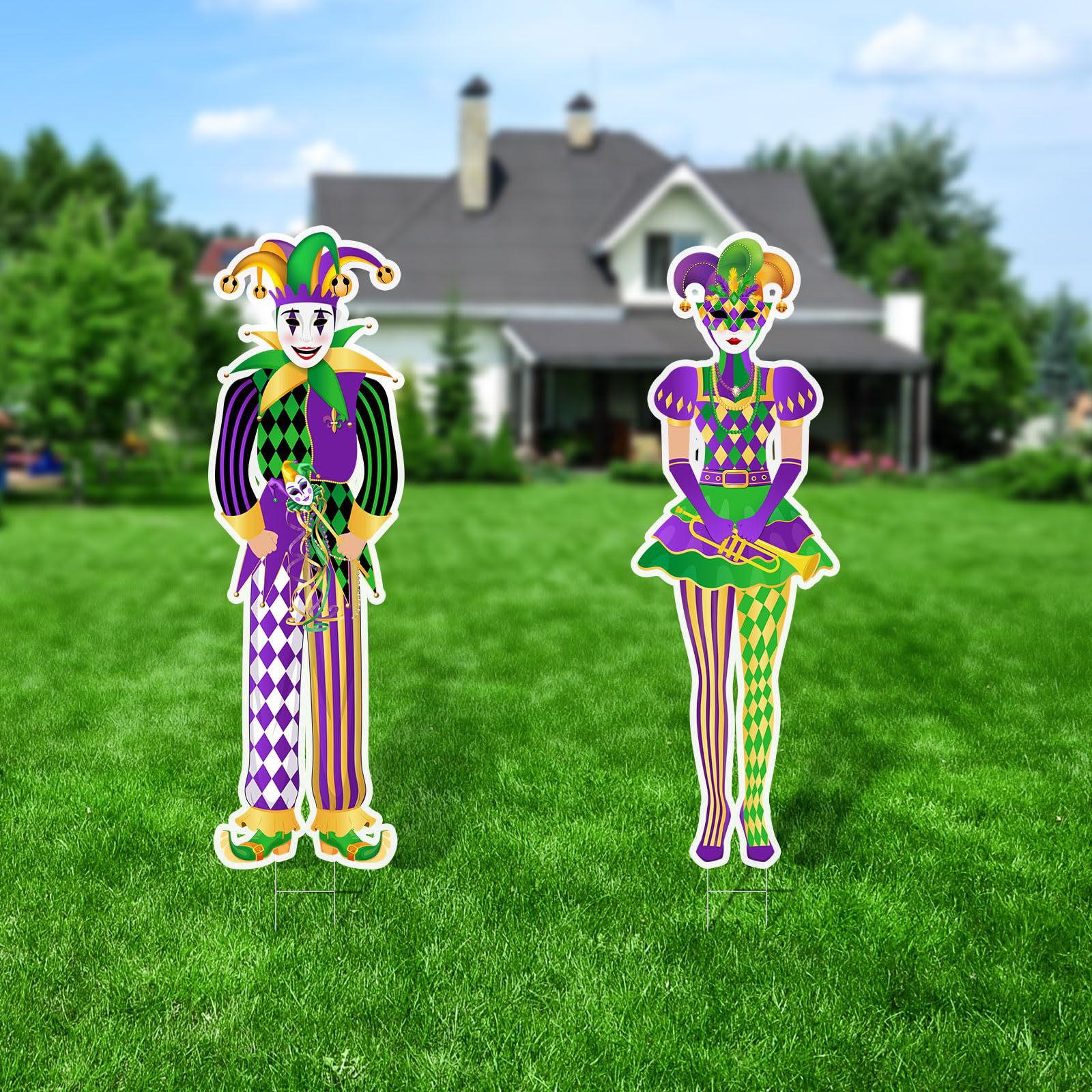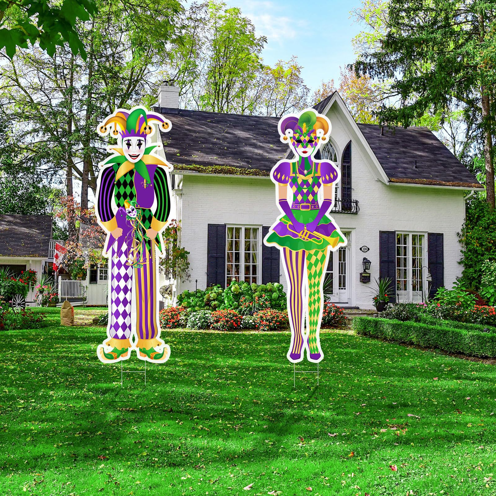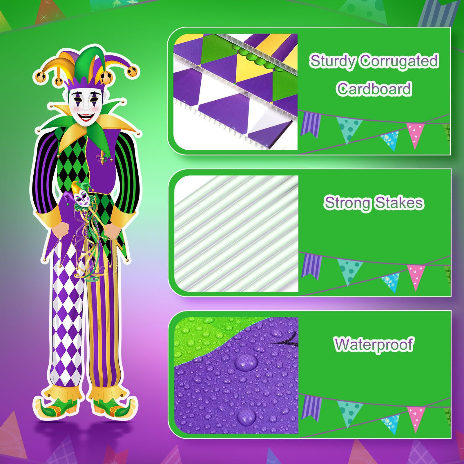 カーニバルの庭の挿し札の2点は道化師のマスクの要素の仮装の舞踏会の祝日の庭の装飾の標識を詰めます。