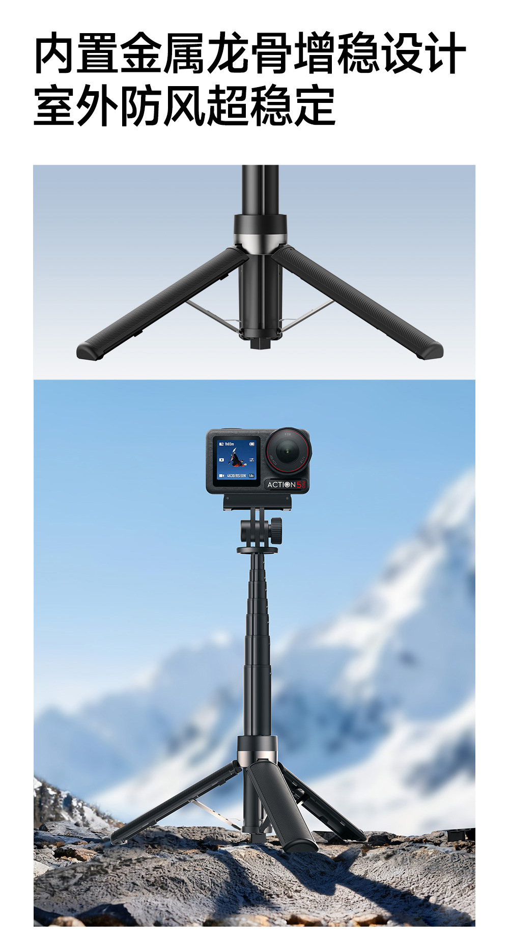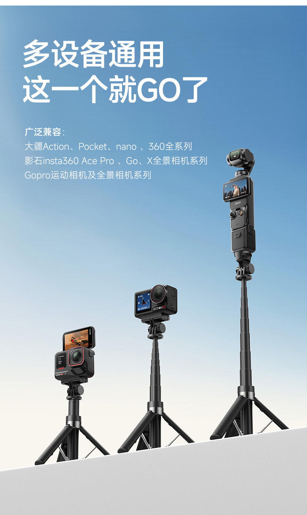 大疆运动相机三角架自拍杆延长杆 GOPRO影石三脚架手持杆手机支架