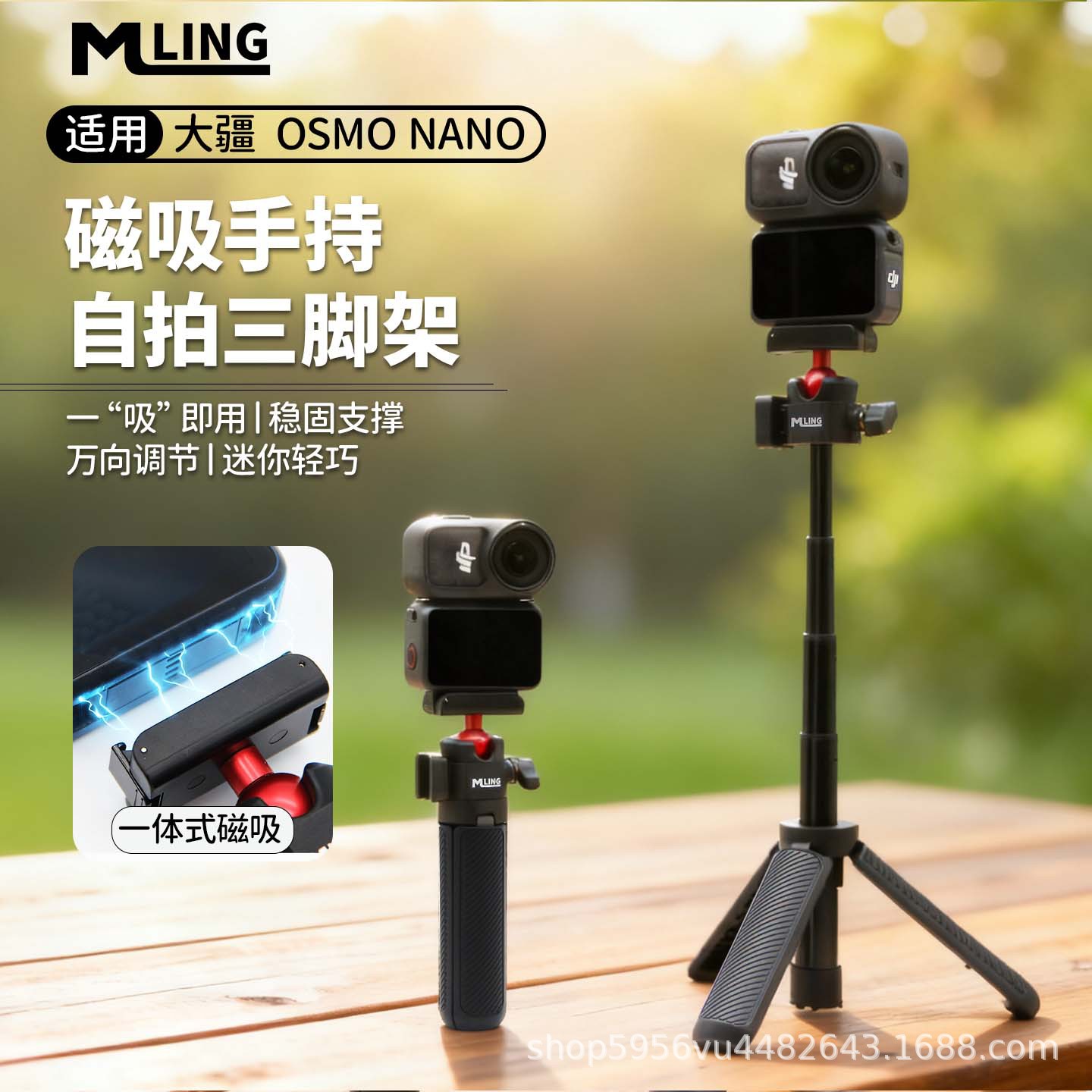 适用大疆Osmo Nano磁吸自拍杆手持三脚架延长杆冷靴运动相机配件