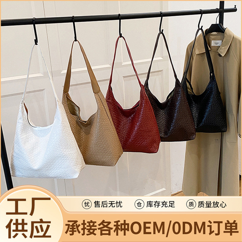 カジュアルデザイン洋気大容量ワンショルダー2024ファッション流行编み通勤シンプルレトロトート脇下バッグ