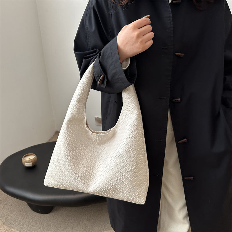 2025 新しいカジュアルレトロ大容量ソリッドカラー人気の西洋スタイルの新しい織りパターンシングルショルダー脇の下トートバッグ