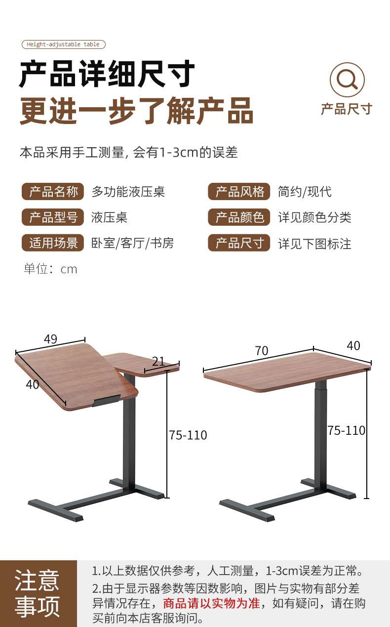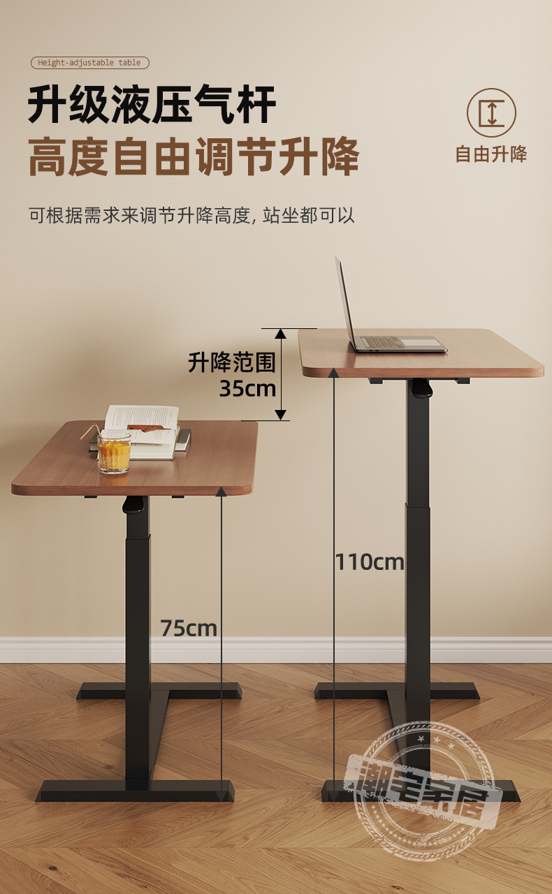 液圧昇降ベッドサイドテーブル昇降コンピュータデスク家庭用オフィスデスク移動式テーブル学生用机サイドテーブル