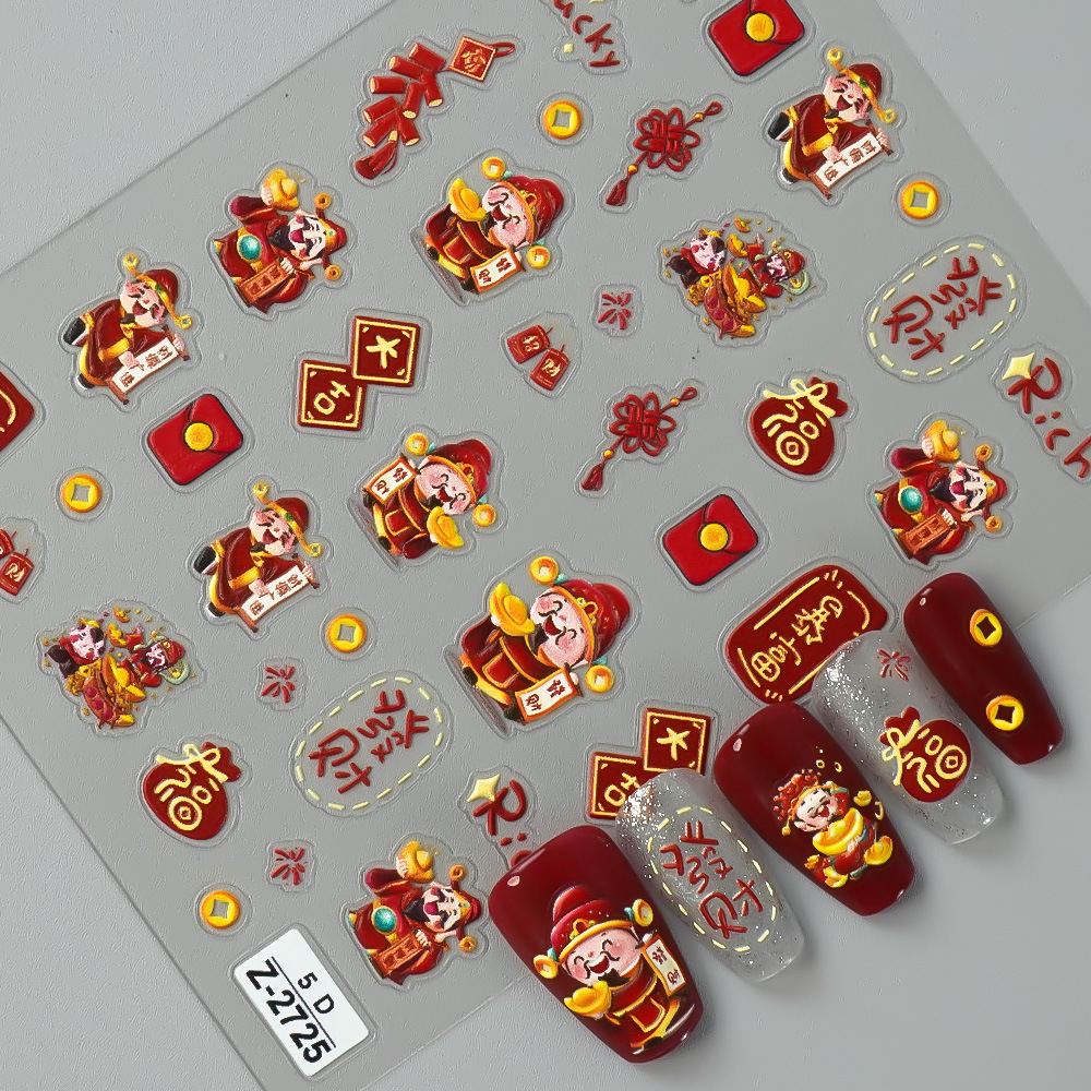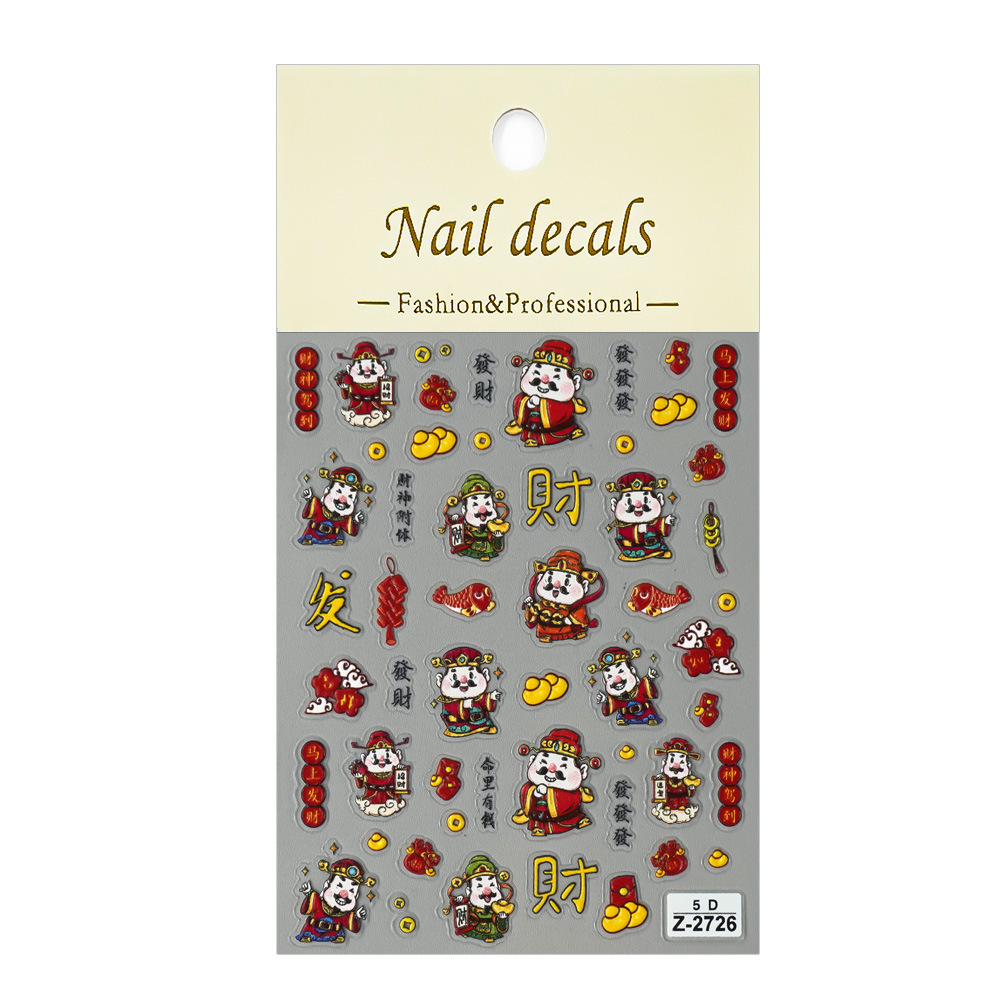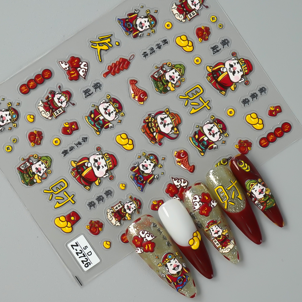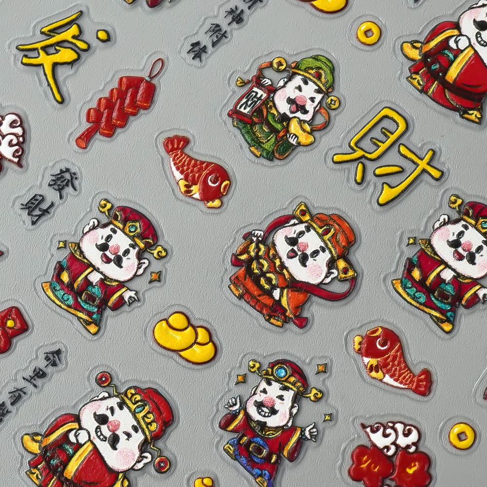 Redanco新品5Dレリーフインスタ风新年大吉財神爷ネイルシール立体爪ステッカーZ-2727