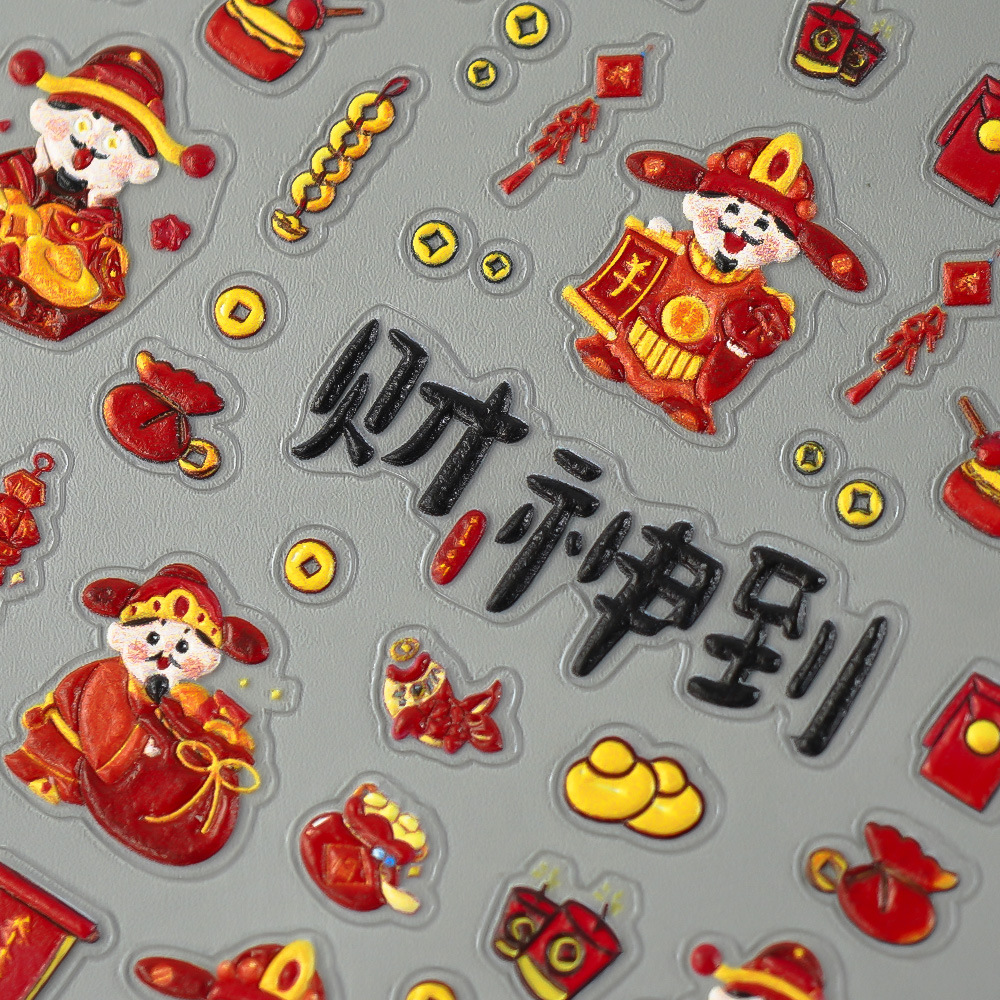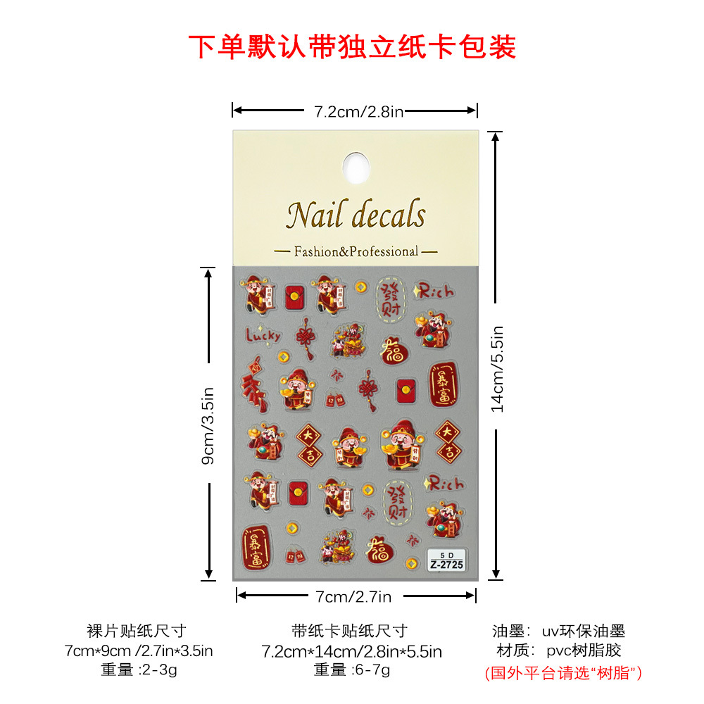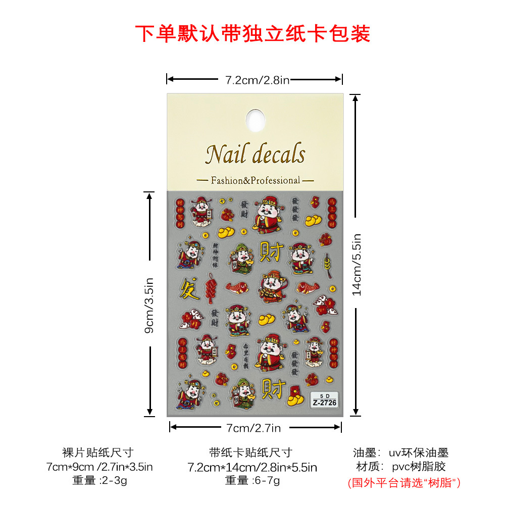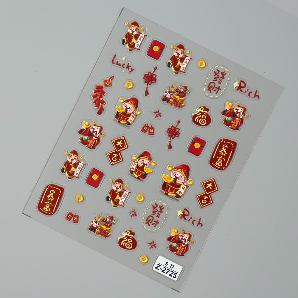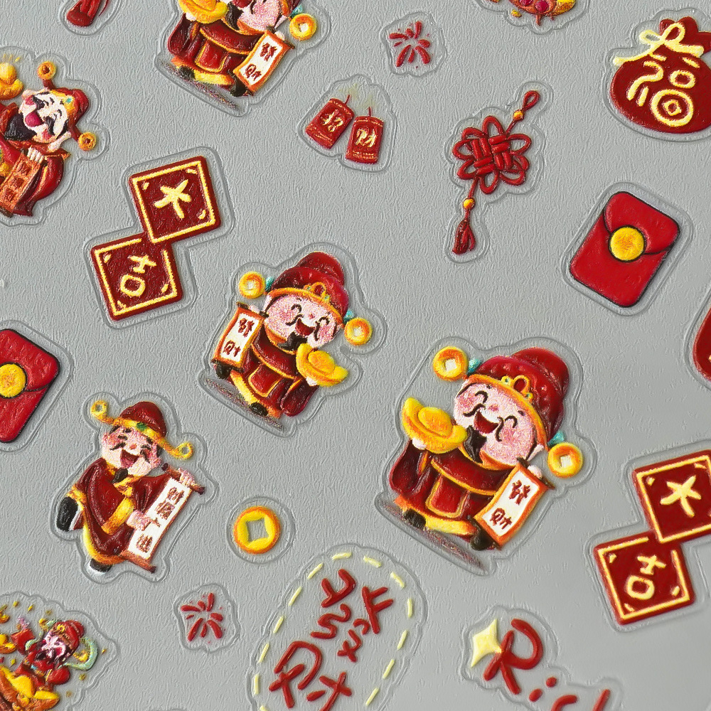 Redanco新品5Dレリーフインスタ风新年大吉財神爷ネイルシール立体爪ステッカーZ-2727
