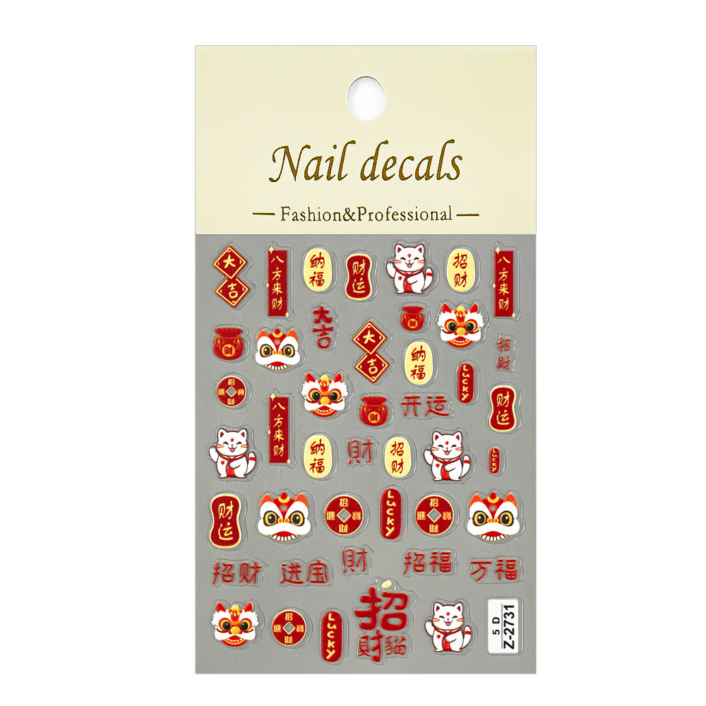Redanco新作5Dレリーフ新年大吉暴富招き猫ネイルシール立体爪ステッカーZ-2742