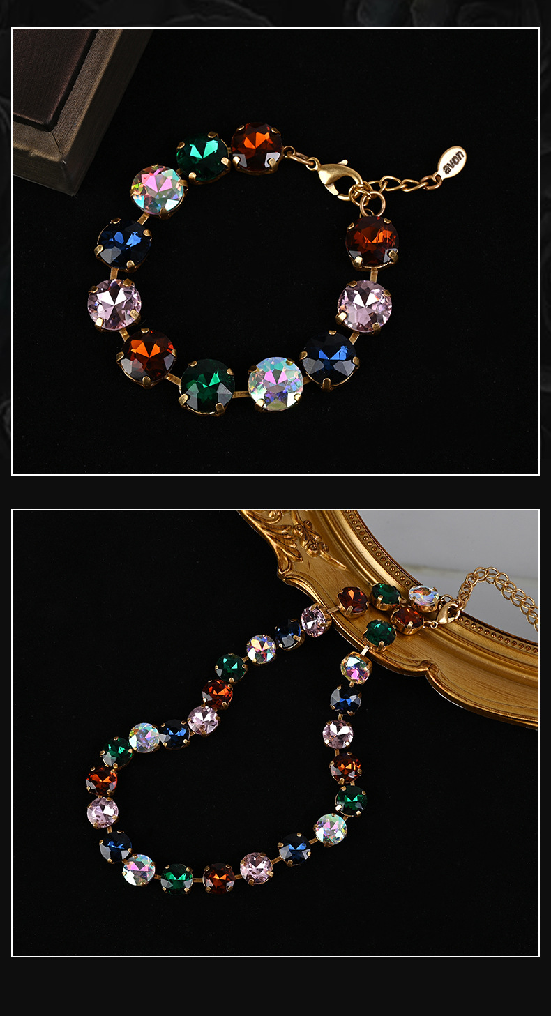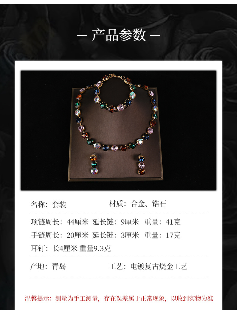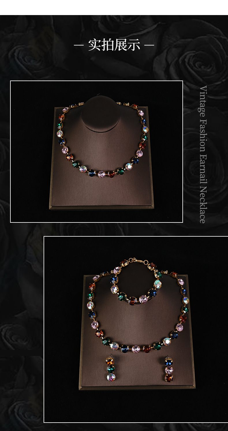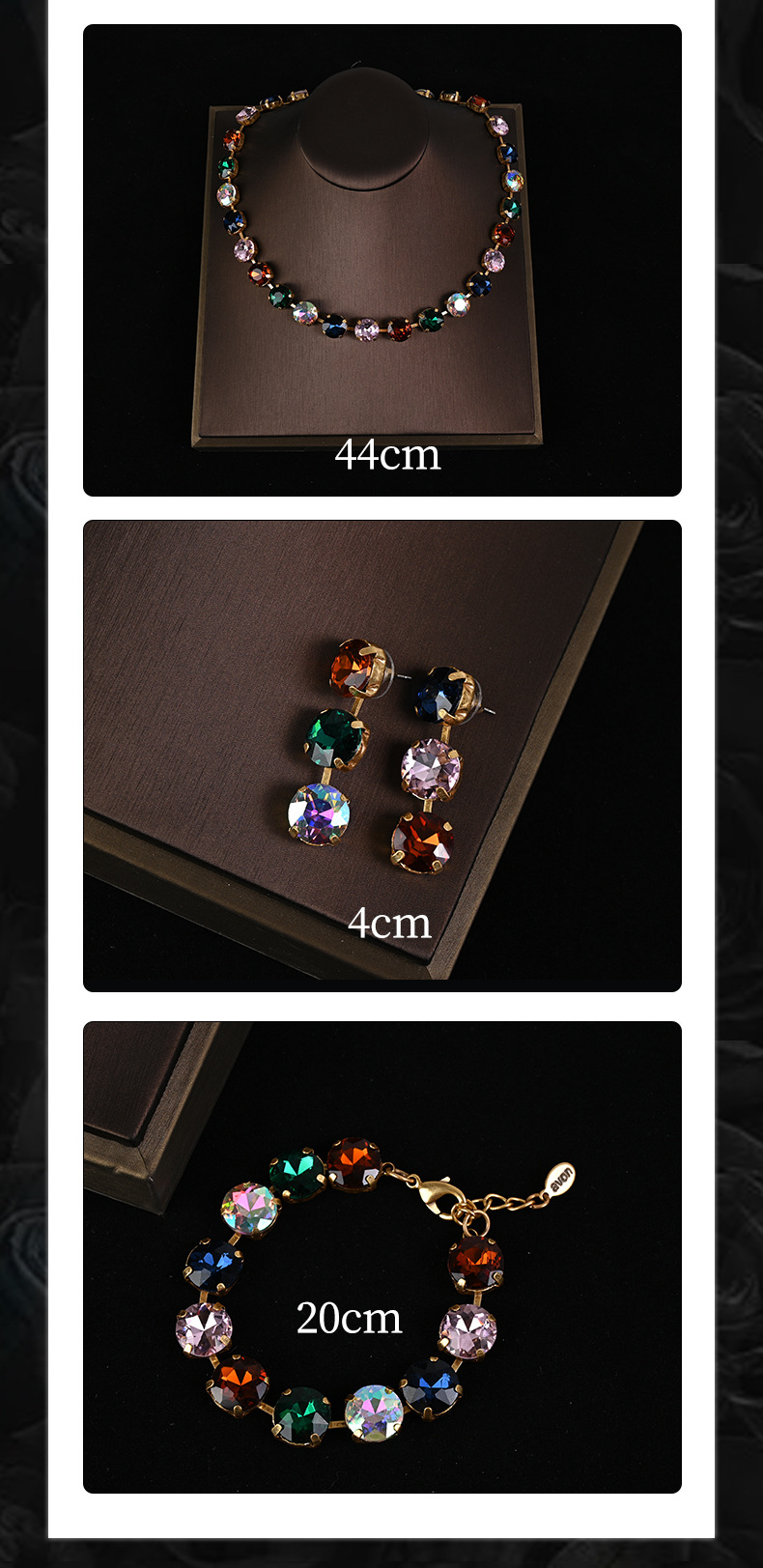 ジェムストーンチェーンレトロ宮殿スタイルカラーガラスドーパミンスタイルレインボービーズイヤリングブレスレットネックレスセット