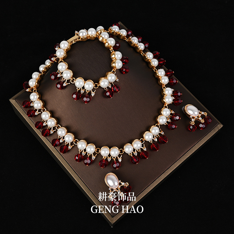 青島中古アクセサリー多色レース真珠ネックレスピアス女性の軽い贅沢な質感のレトロなジュエリーセット