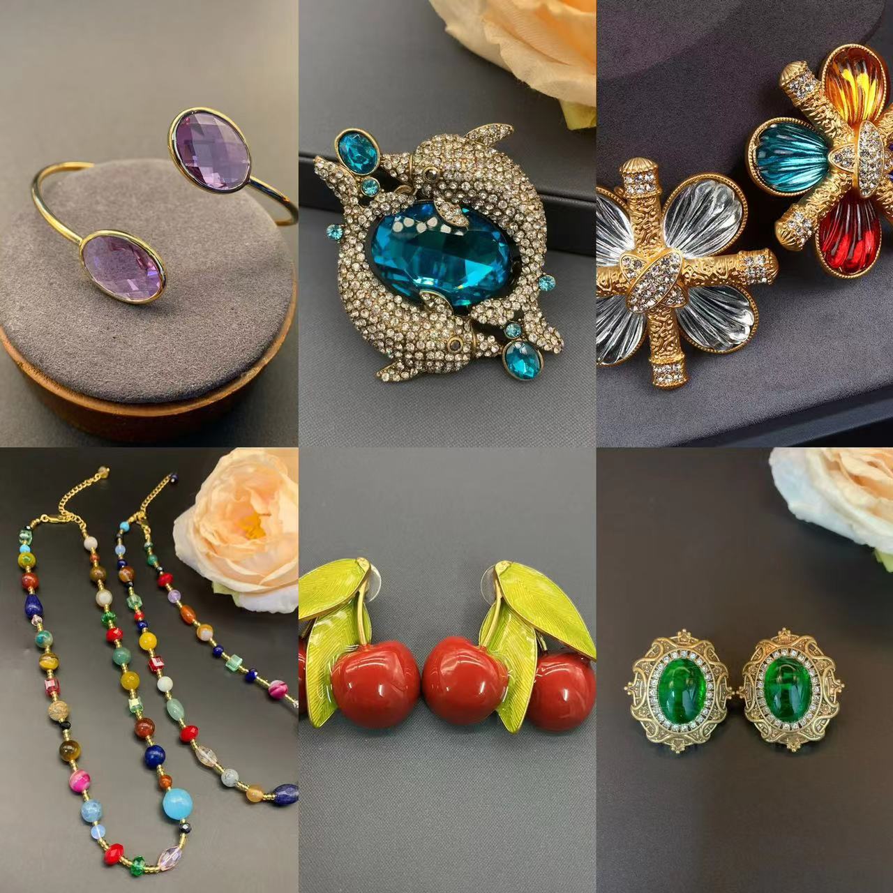 青島アクセサリーレトロ小衆ピアスネックレスブレスレットブローチセット高級感秋冬卸売レディース