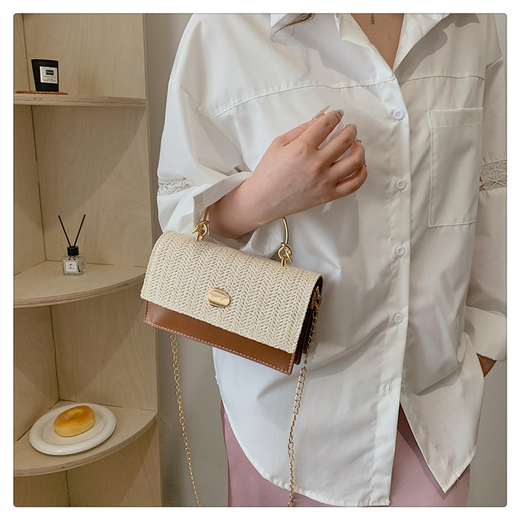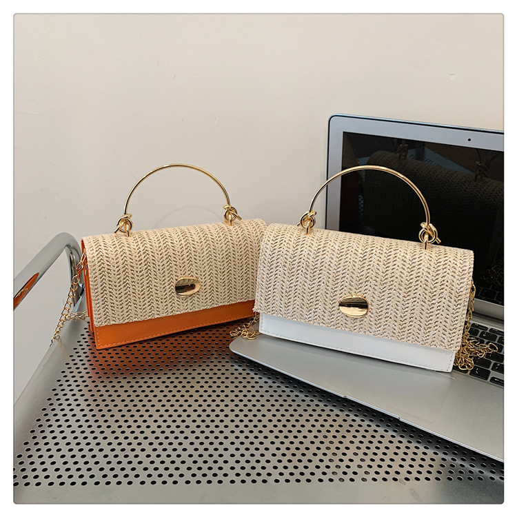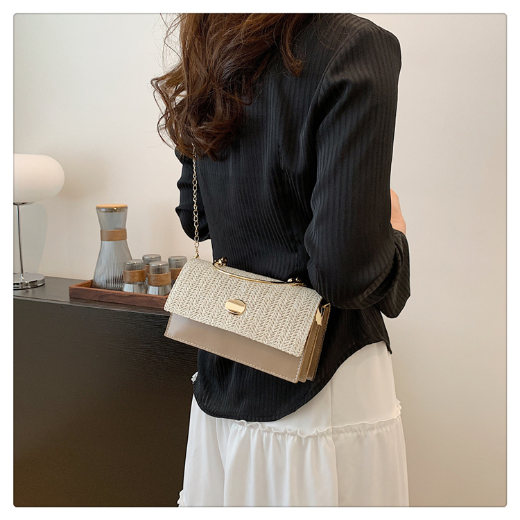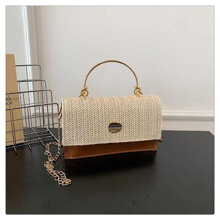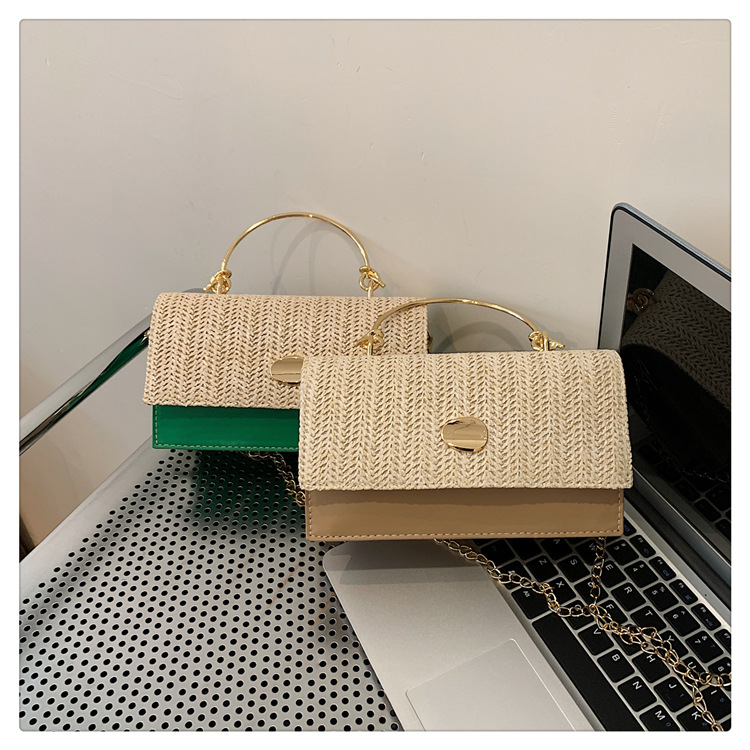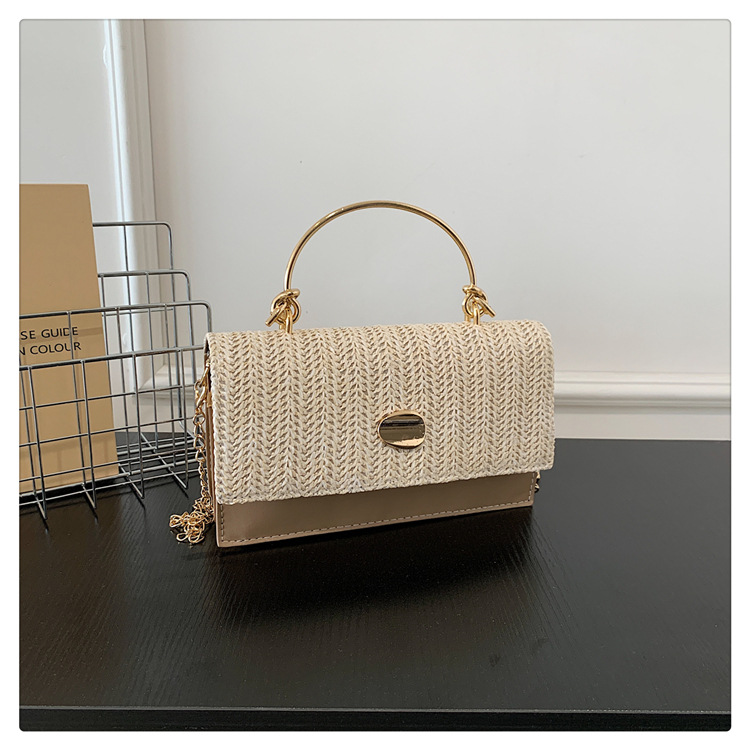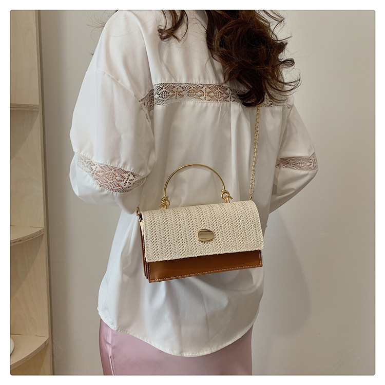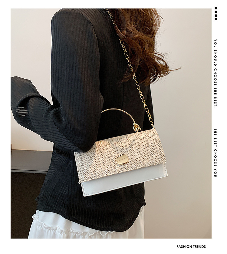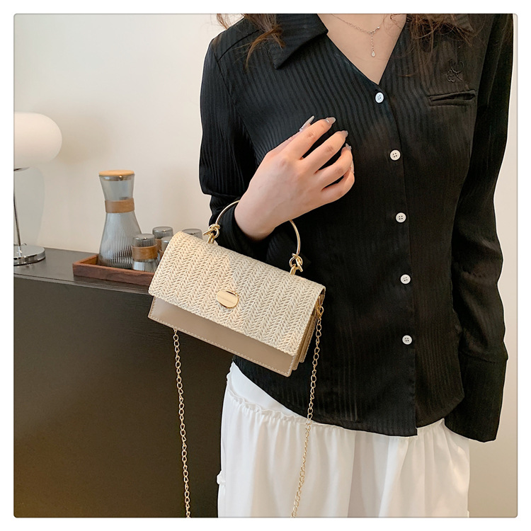 冬の洋気の新型の編み物はシンプルでファッション的な韓国版の質感のチェーンの潮流の金属の手提げの斜め掛けの女性のカバンをつなぎ合わせます。