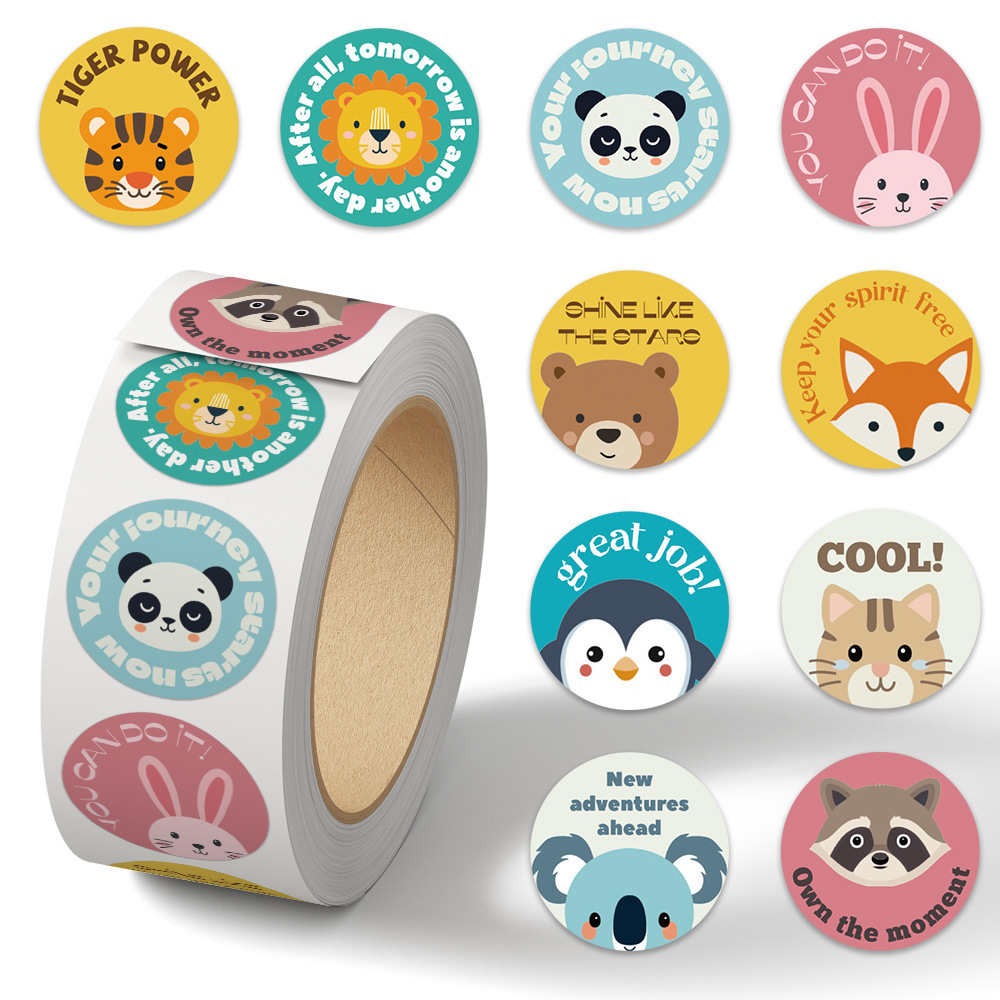 500枚/巻クロスボーダーアニメ動物は英語シールのステッカーラベル奨励シールの現物卸売りを奨励する