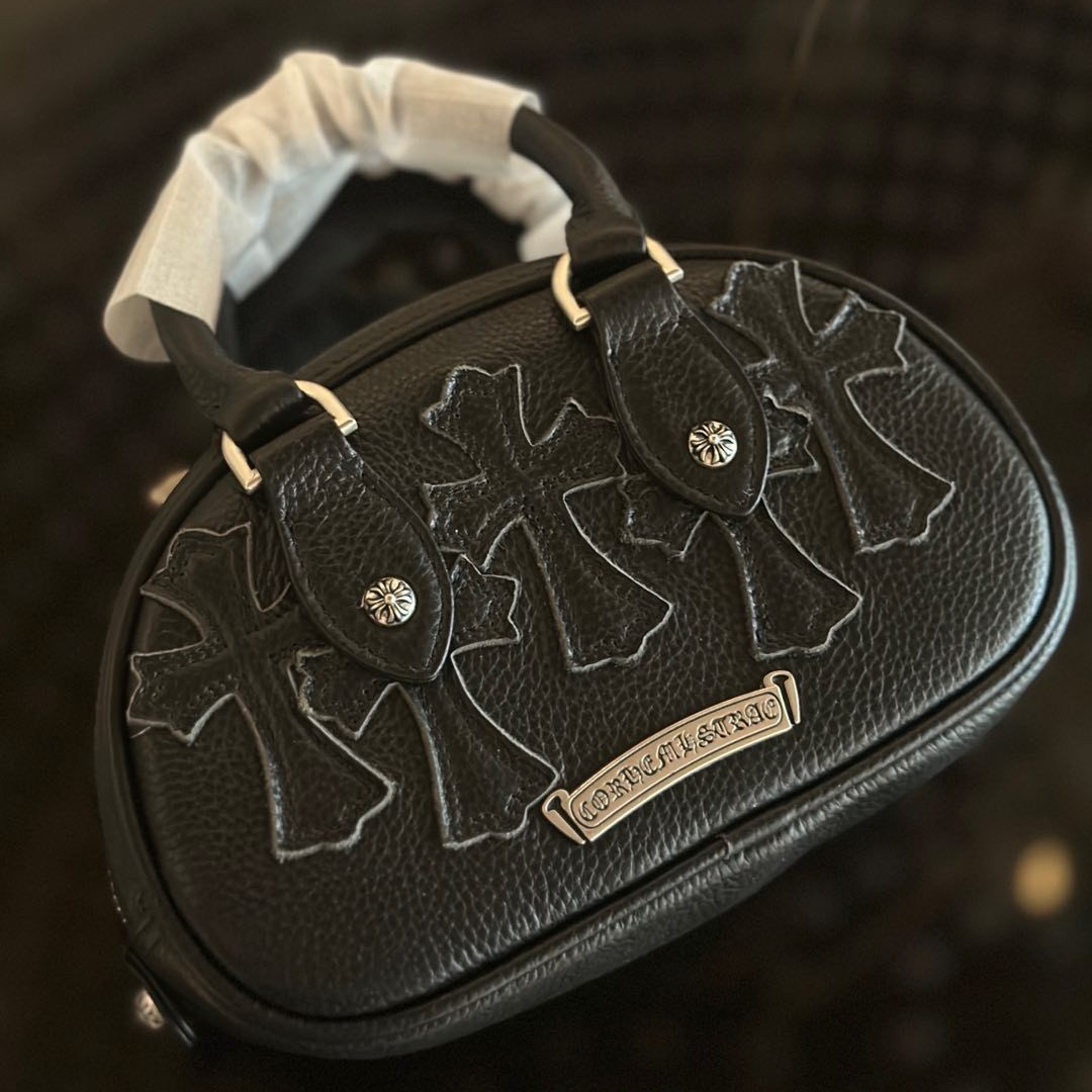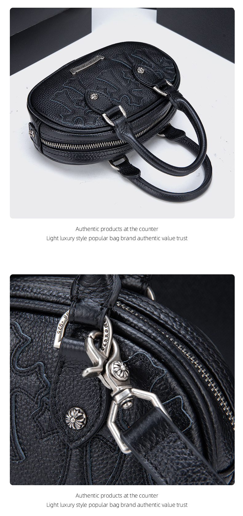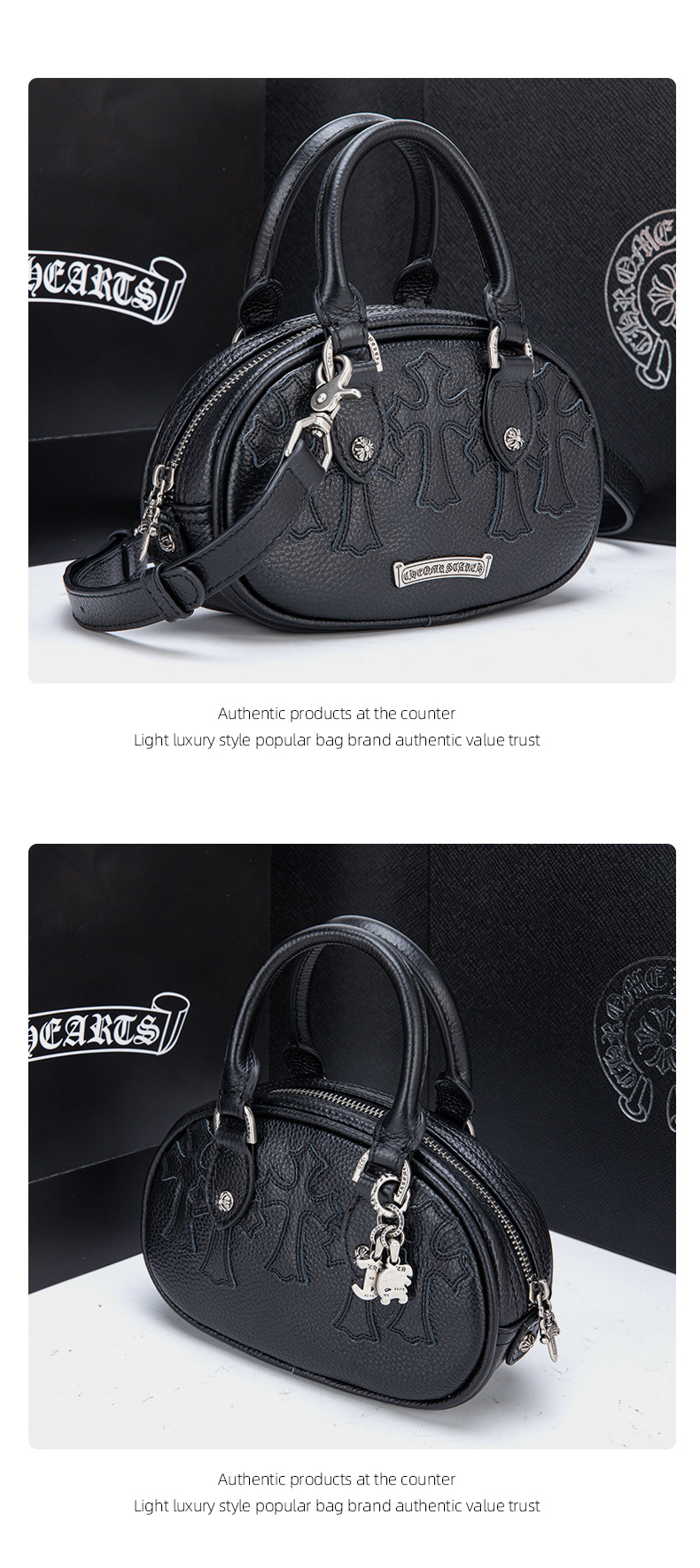 正确版2025新款头层牛皮跨境十字架保龄球包时尚单肩斜挎手提包