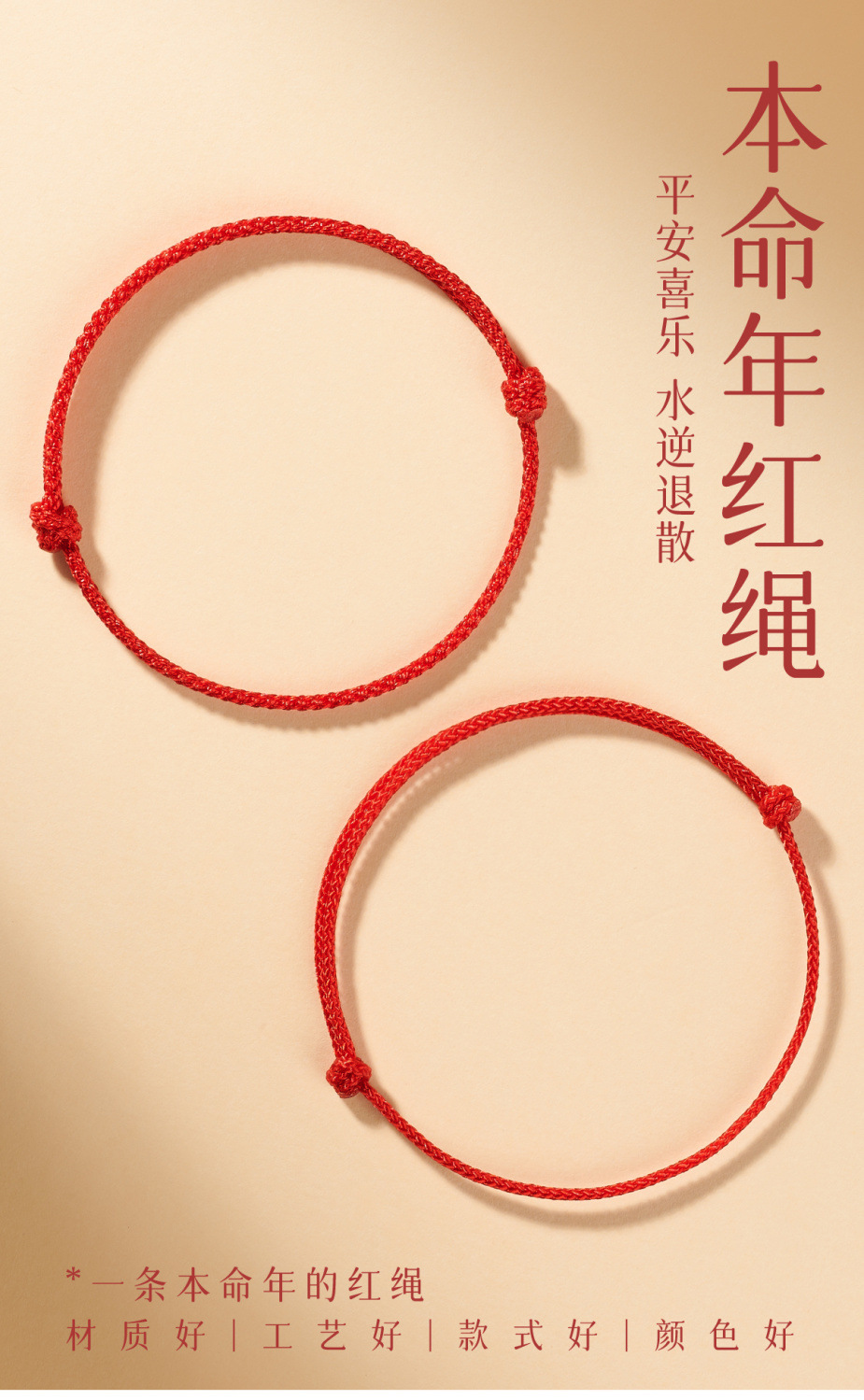 本命年小红绳护身手链平安旺运手绳女脚链学生情侣简约吉祥红绳