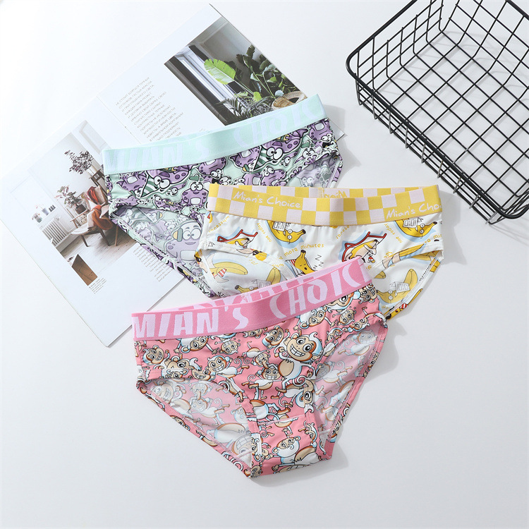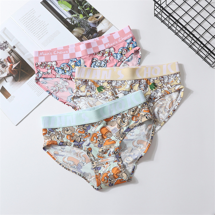 ファッションの快適な男性の下着の氷の糸の中で腰の四角の薄い金の氷感の太っている人の漫画のプリントの青少年の男性の下着