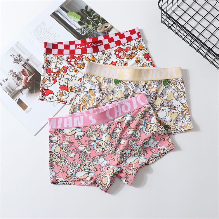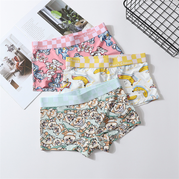 女性の下着純綿ボクサーパンツミッドウエストスポーツ通気性漫画プリントボクサーパンツ学生