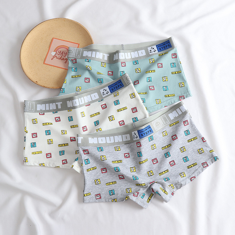 女性用パンツ、純綿、快適なボクサーパンツ、グラフィティプリント、ユニセックス三角パンツ、通気性のあるシンプルな四角パンツ