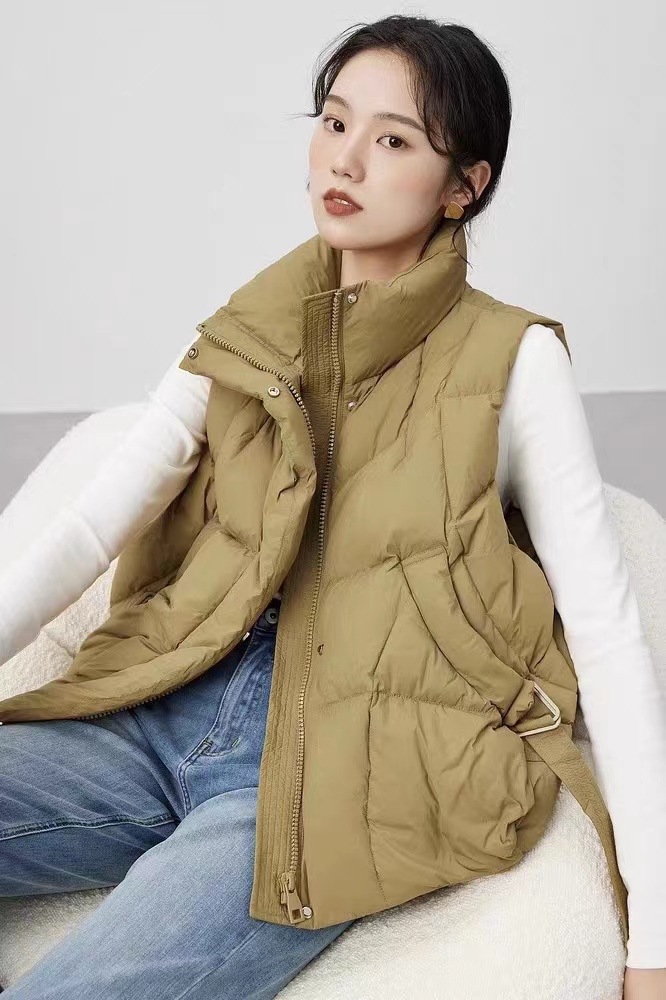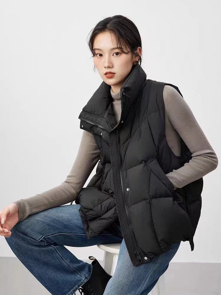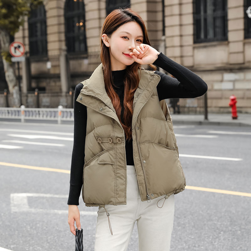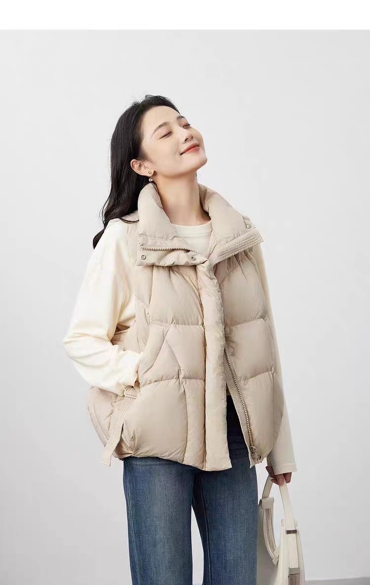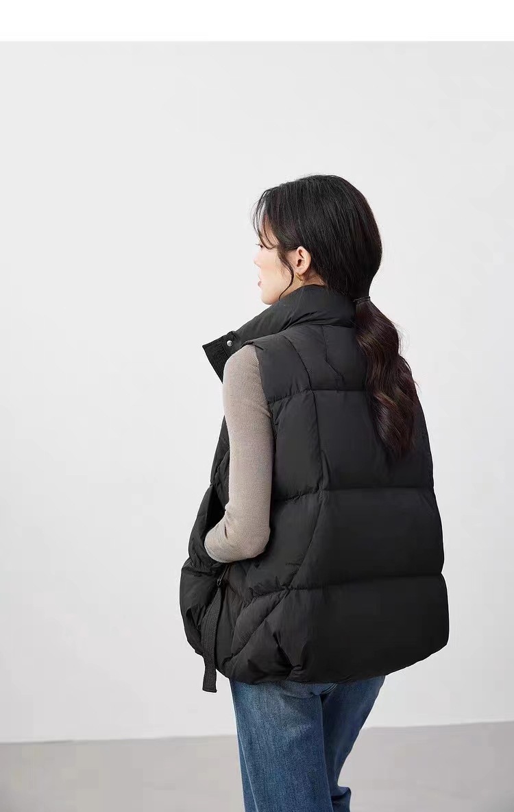 抽绳马甲新货羽绒马甲羽绒马甲短款时尚显瘦百搭立领背心