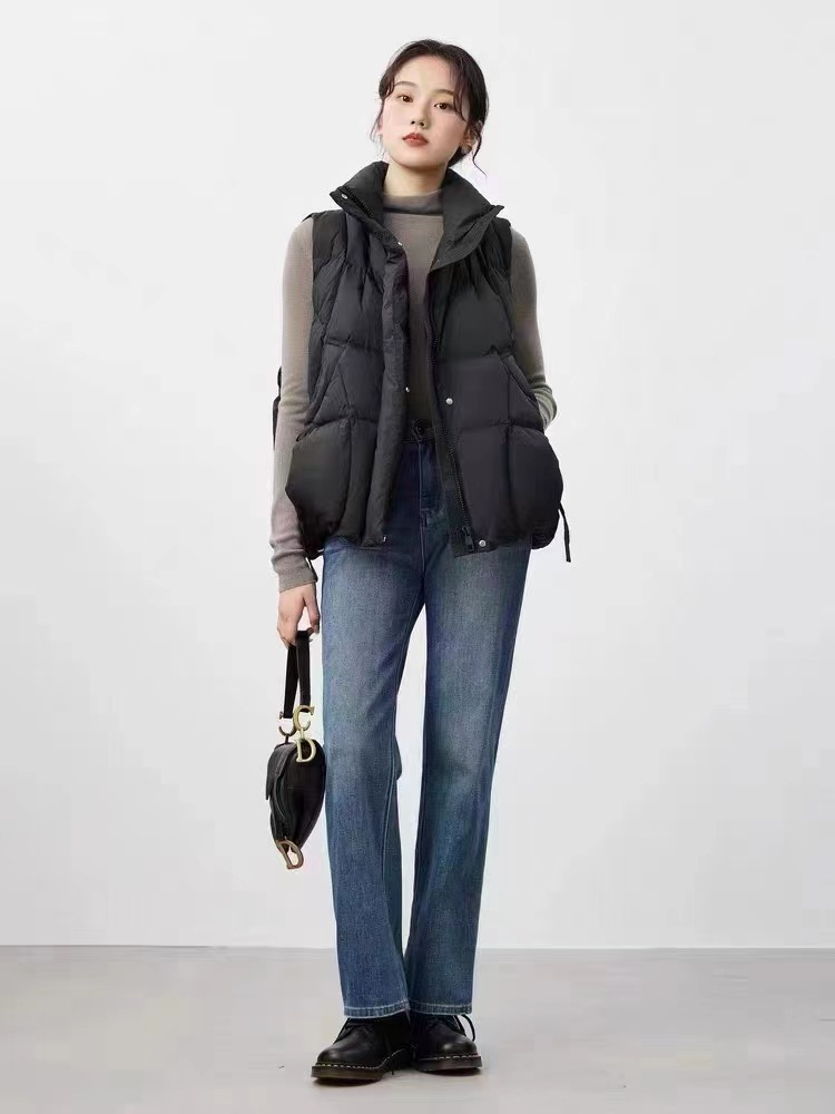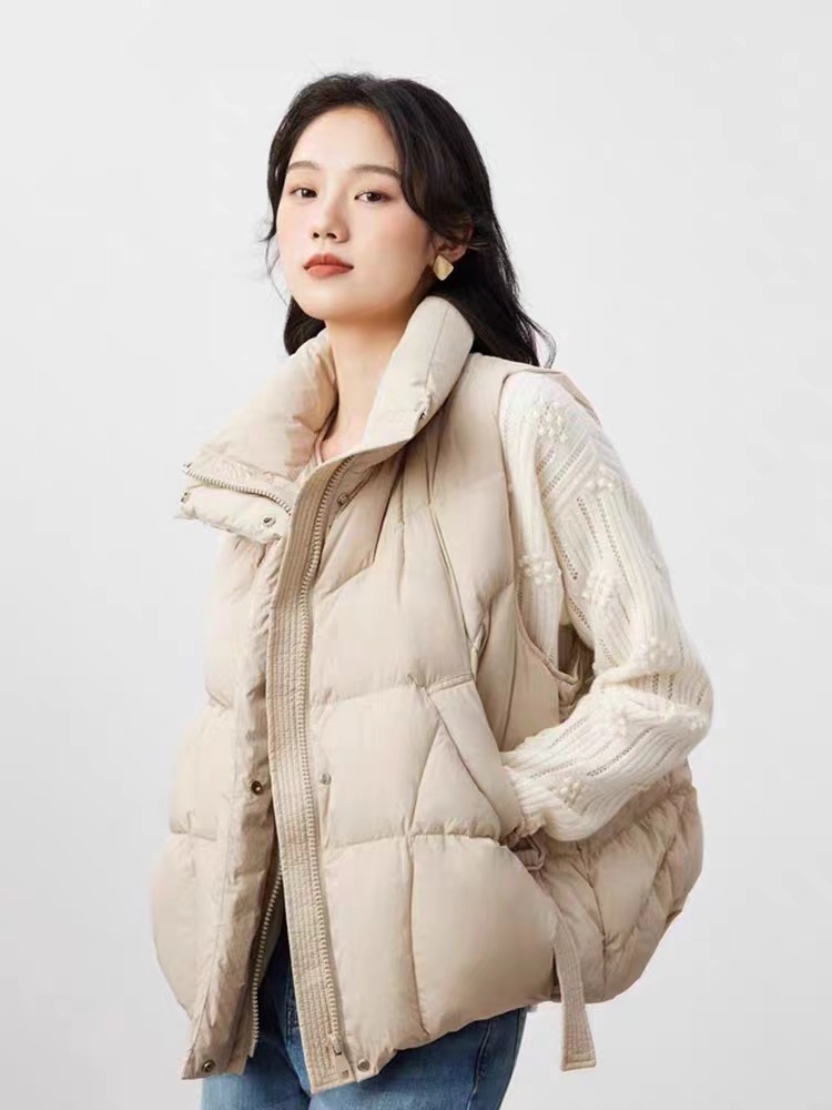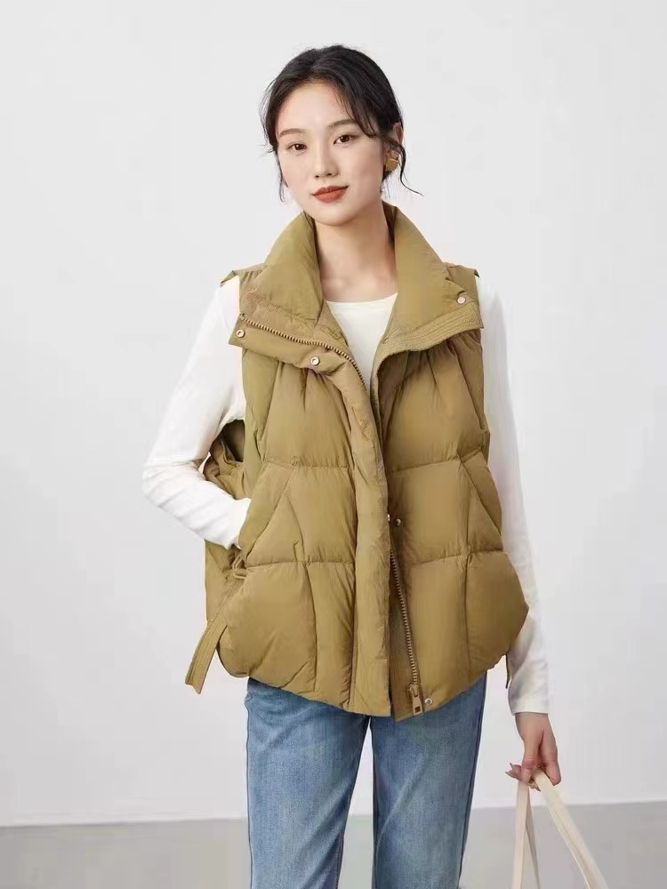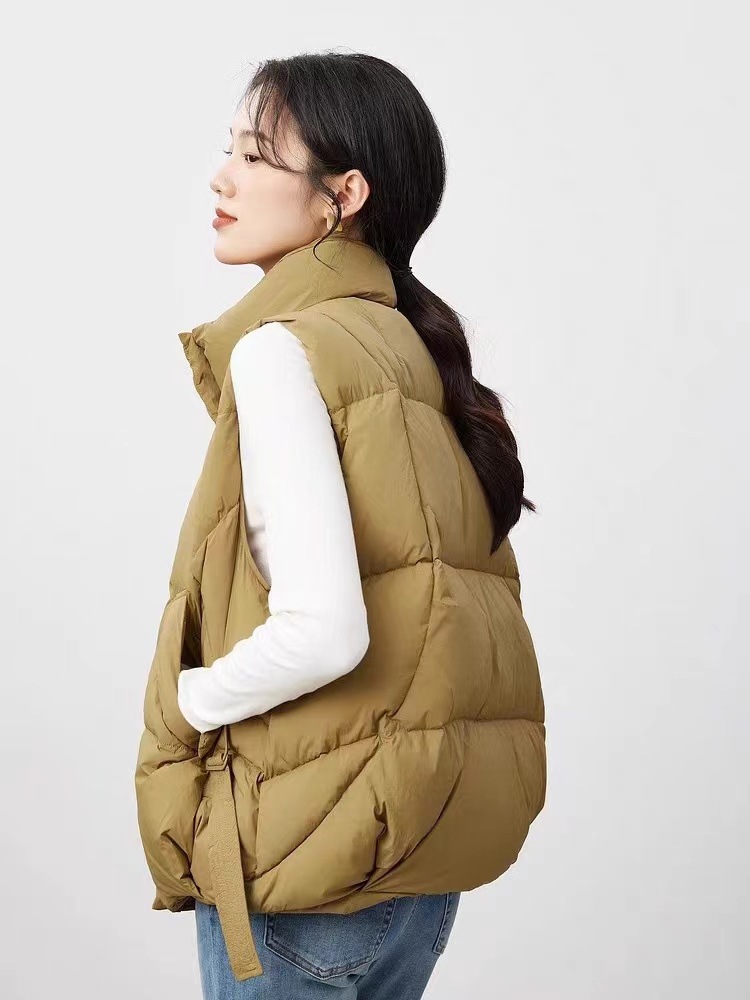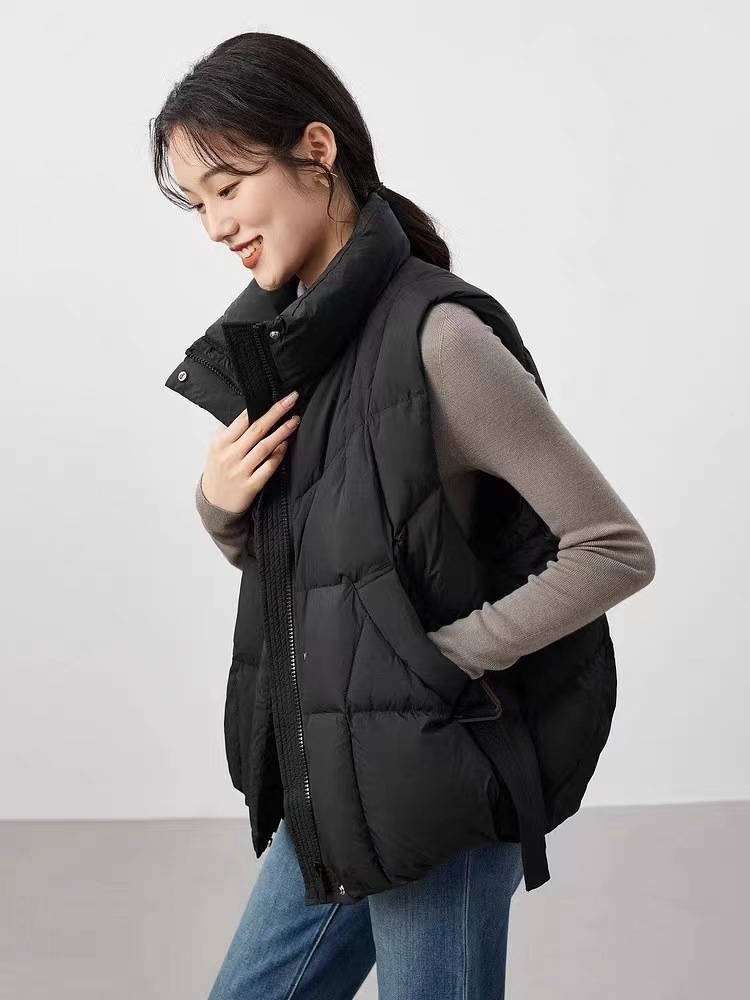 抽绳马甲新货羽绒马甲羽绒马甲短款时尚显瘦百搭立领背心
