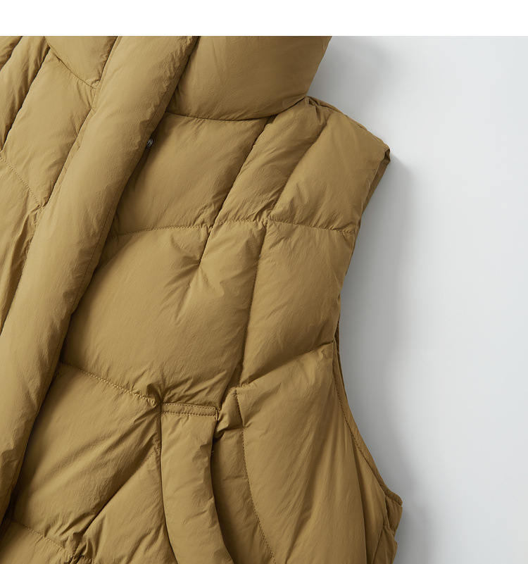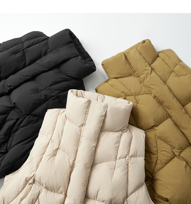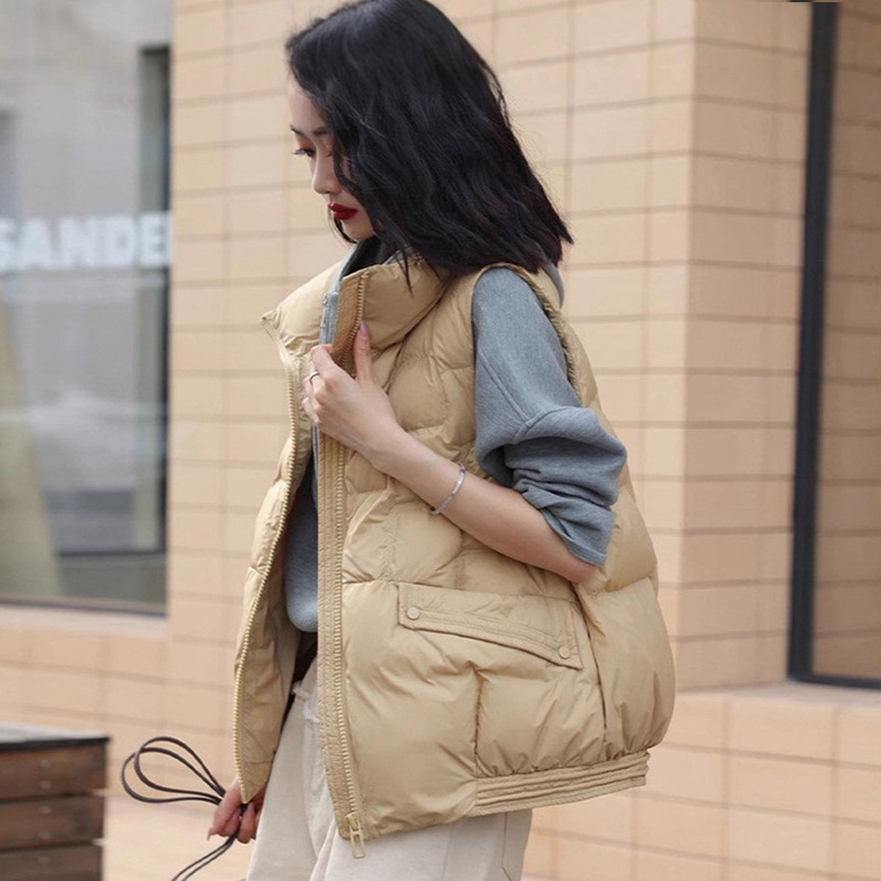 新作リベット付き軽量ホワイトダックダウンベスト、多用途、純粋なスタンドカラー、シンプルなジッパー、暖かいレディースベストジャケット