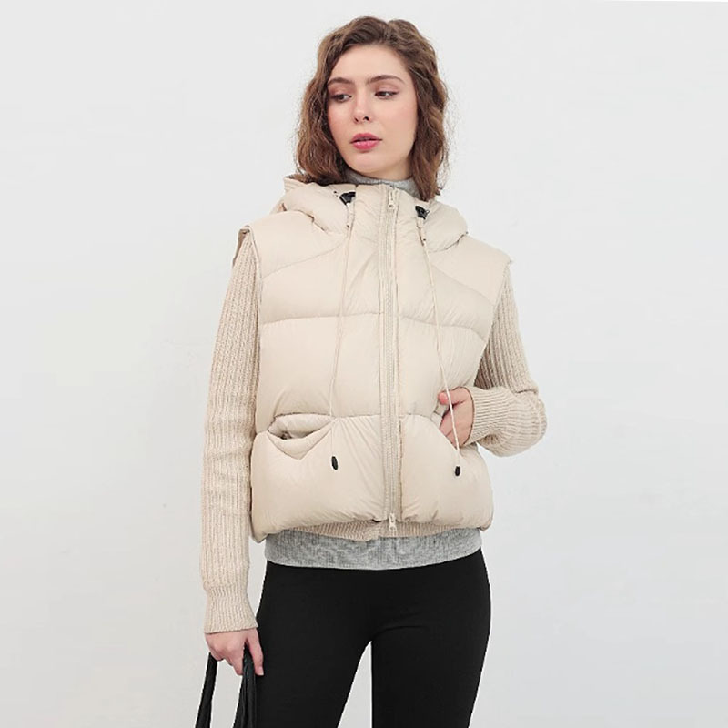 ホワイトダックダウンジャケットベスト レディース フード付き 秋冬 着痩せ 暖かい ショート丈ベスト