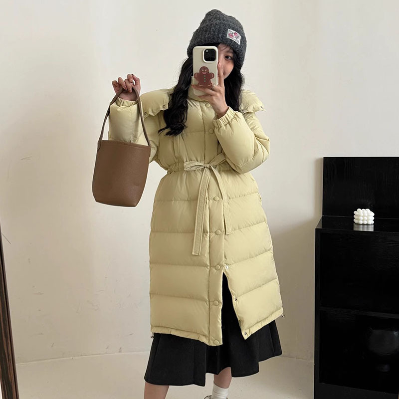 レースアップロング2025秋冬新作ホワイトダックダウンジャケットレディース韓国ファッション万能ミドル丈ダウンジャケット