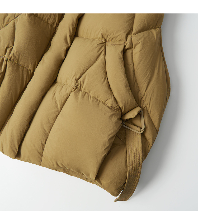 ベルト付きミドル丈ダウンジャケット レディース 冬 ファッション ウエストシェイプ 着痩せ 厚手 Vネックコート トレンド