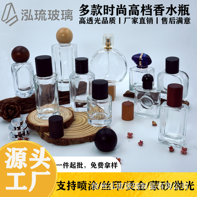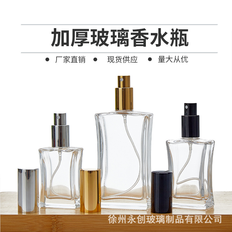 現物四角いガラス香水瓶50ml厚い底押圧式スプレー瓶化粧品サンプル香水分注瓶