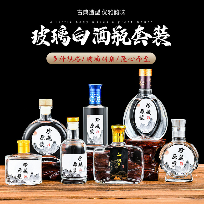 二両の小さいワインの瓶のガラスの白酒の空の瓶の100mlのガラスの酒の瓶の試飲のガラスの喜酒の瓶のセットの卸売り