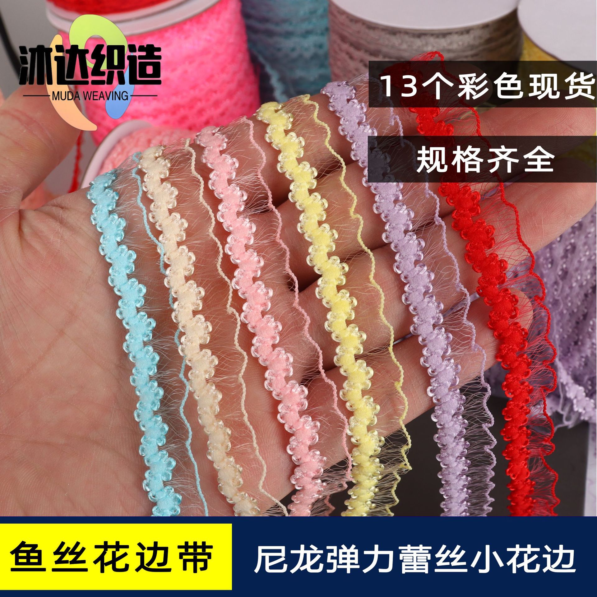 現物13色弾力カラー魚糸小レース皇冠花双列レース弾性ベルト服装補助材料リボン工場