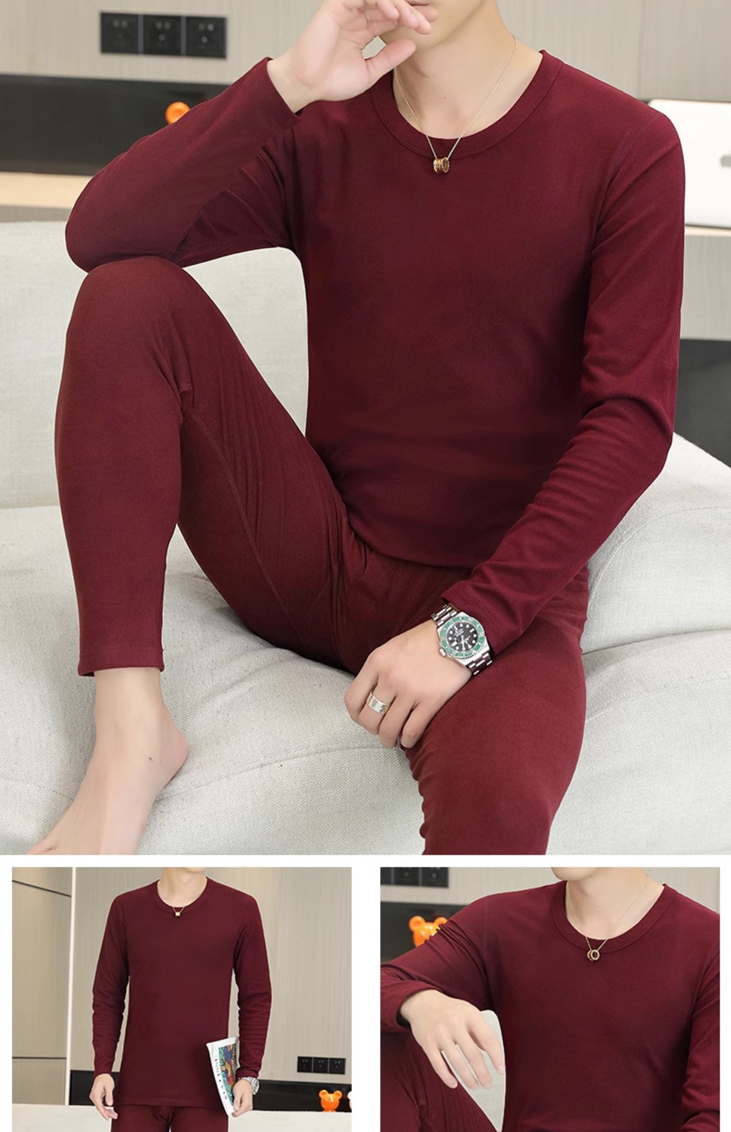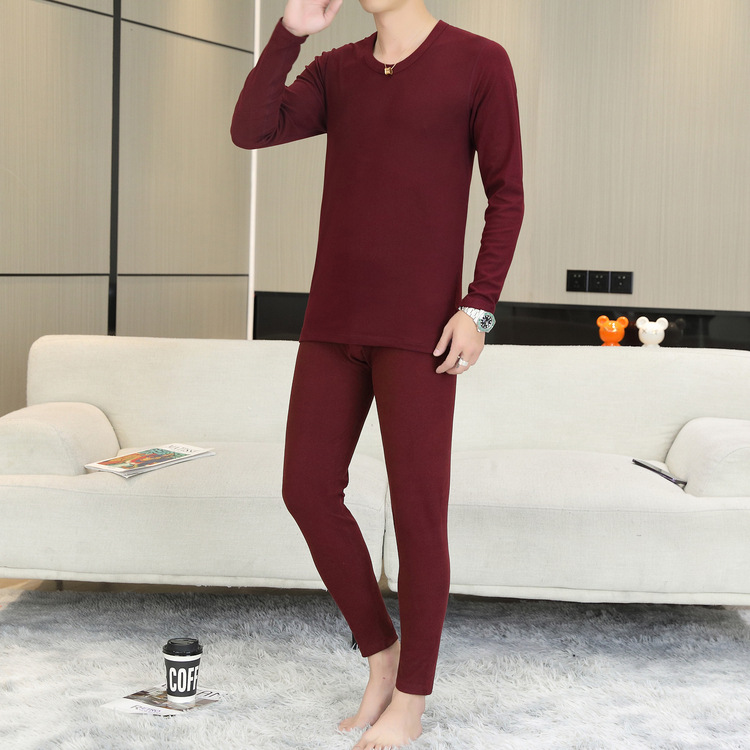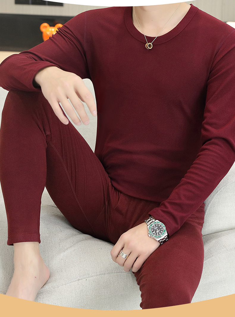 保温下着男秋冬の徳絨毛の底のシャツの本命年の赤い男性の丸首の秋の服の秋のズボンのスーツ
