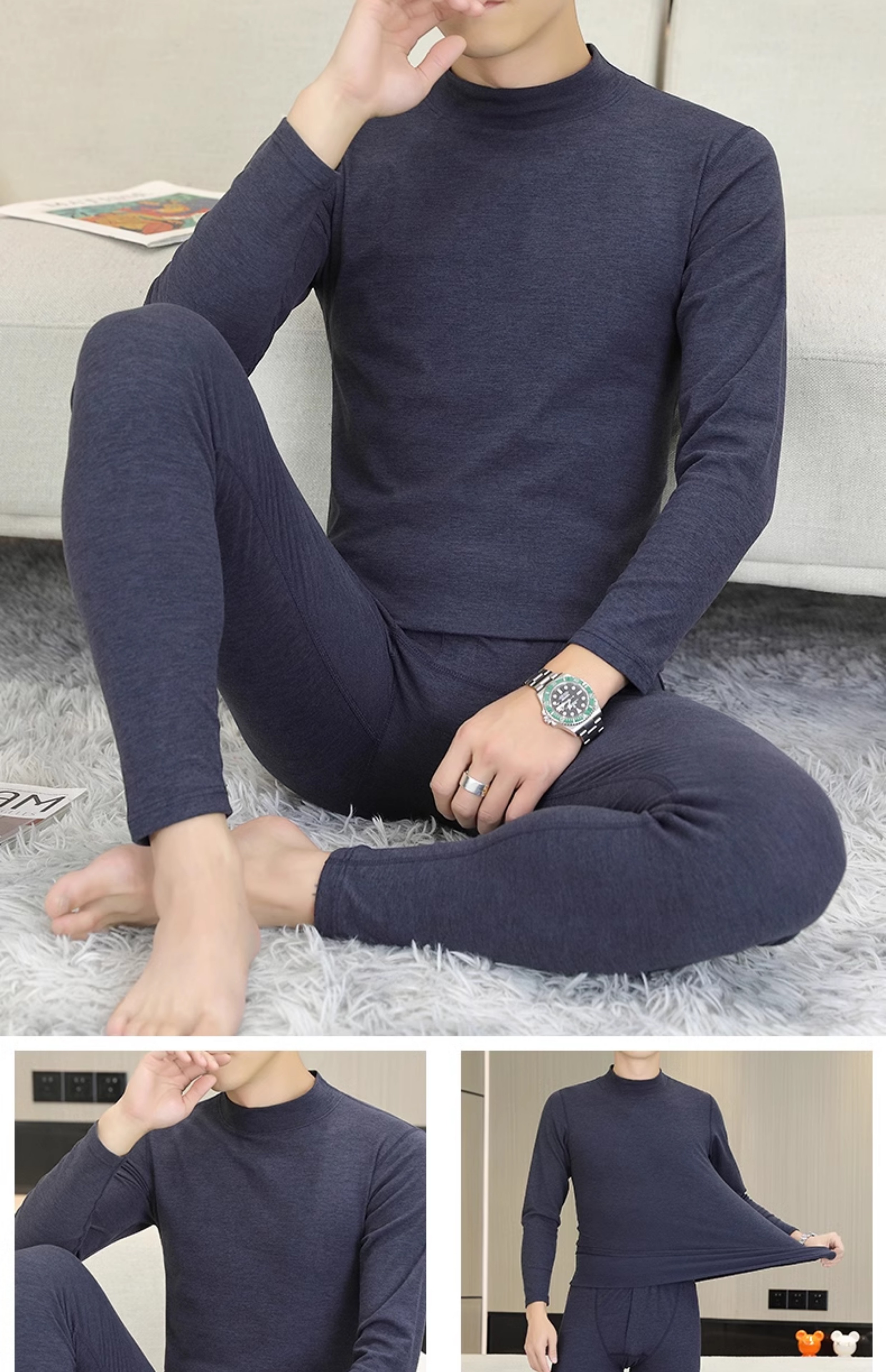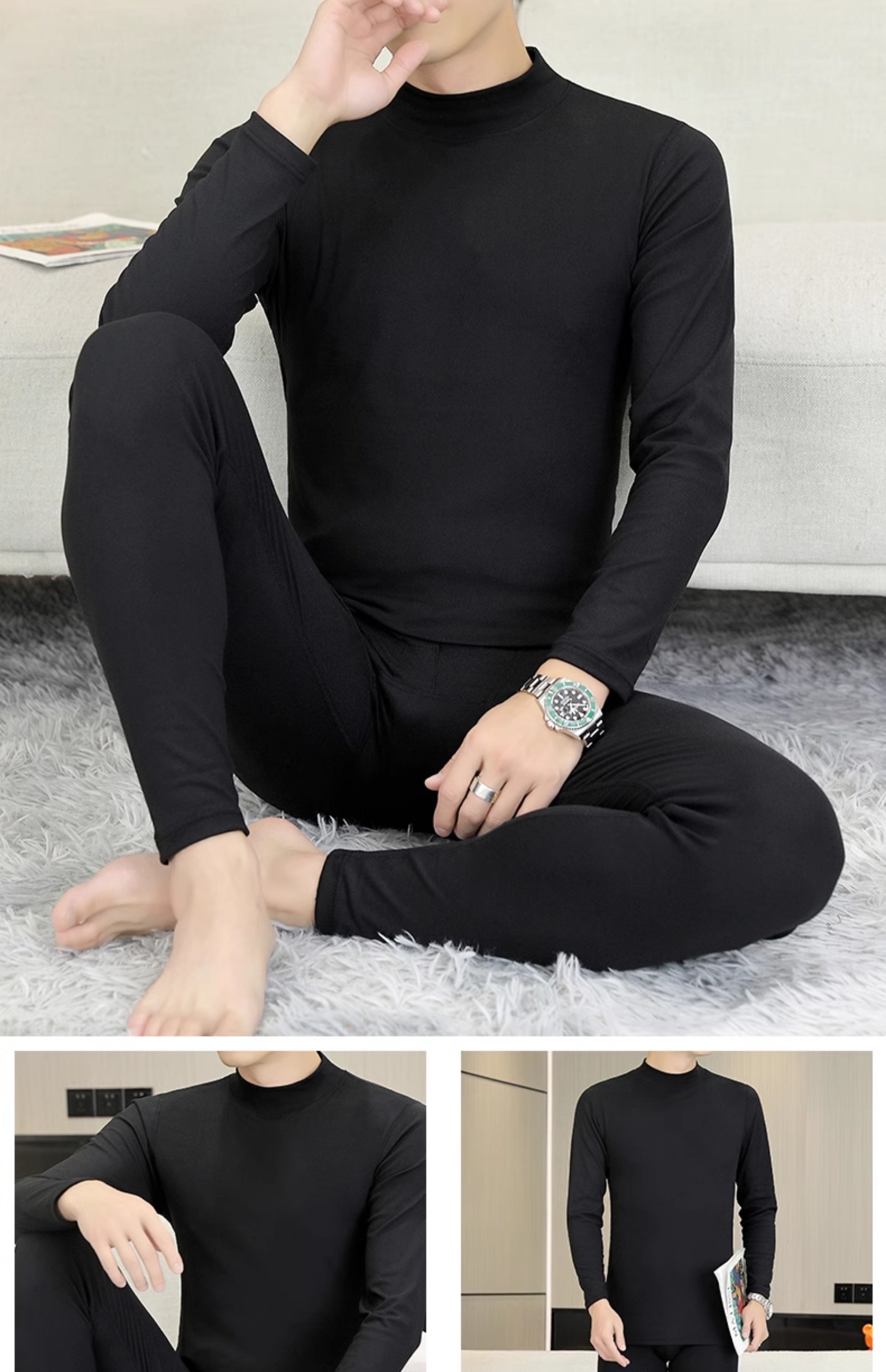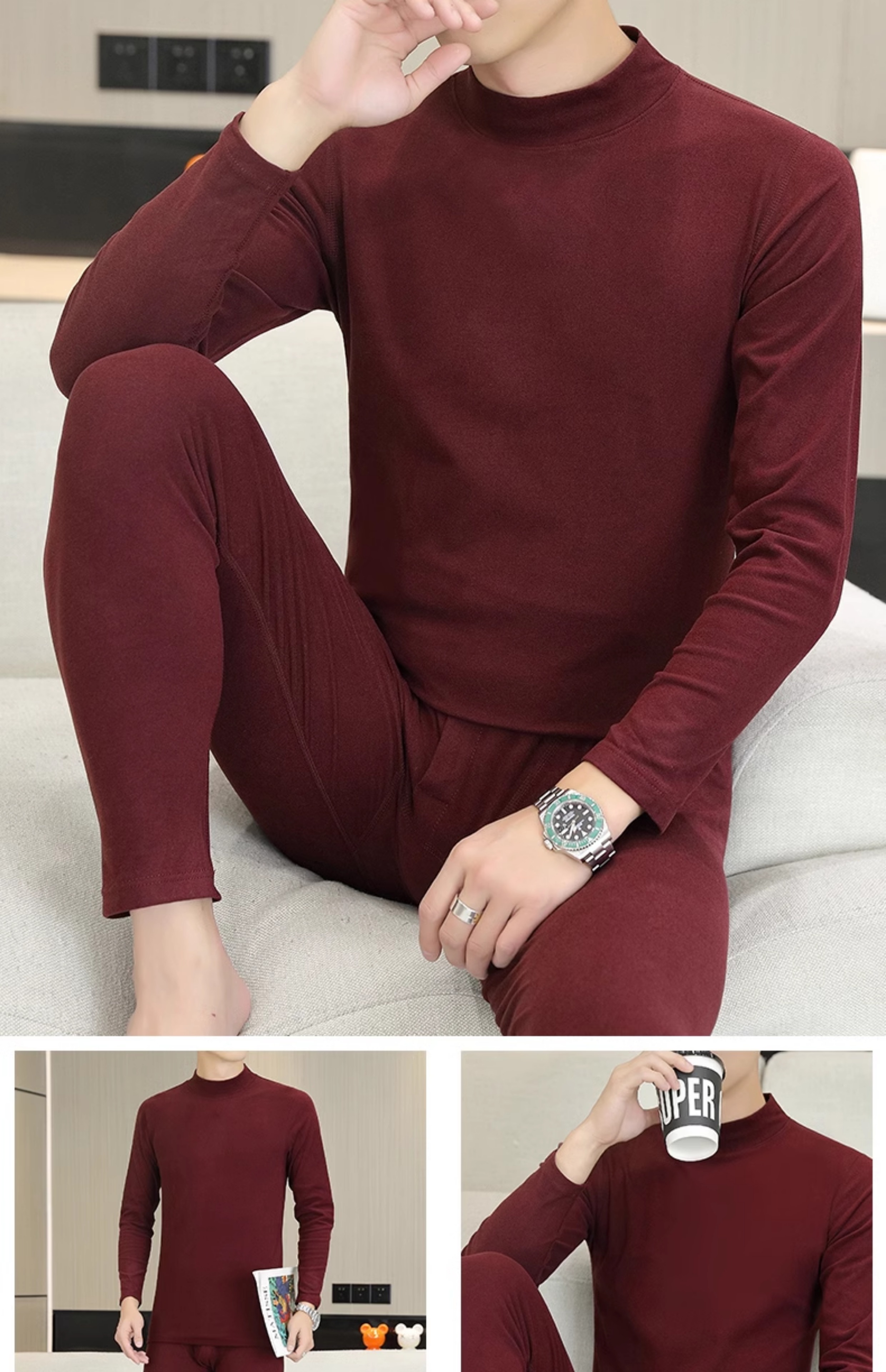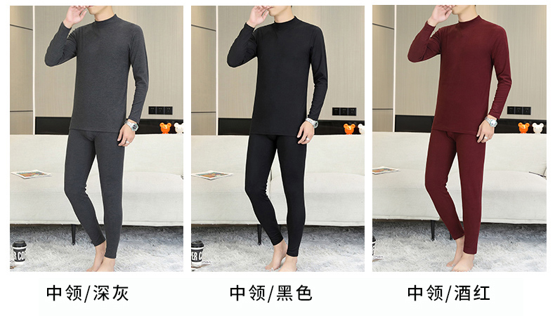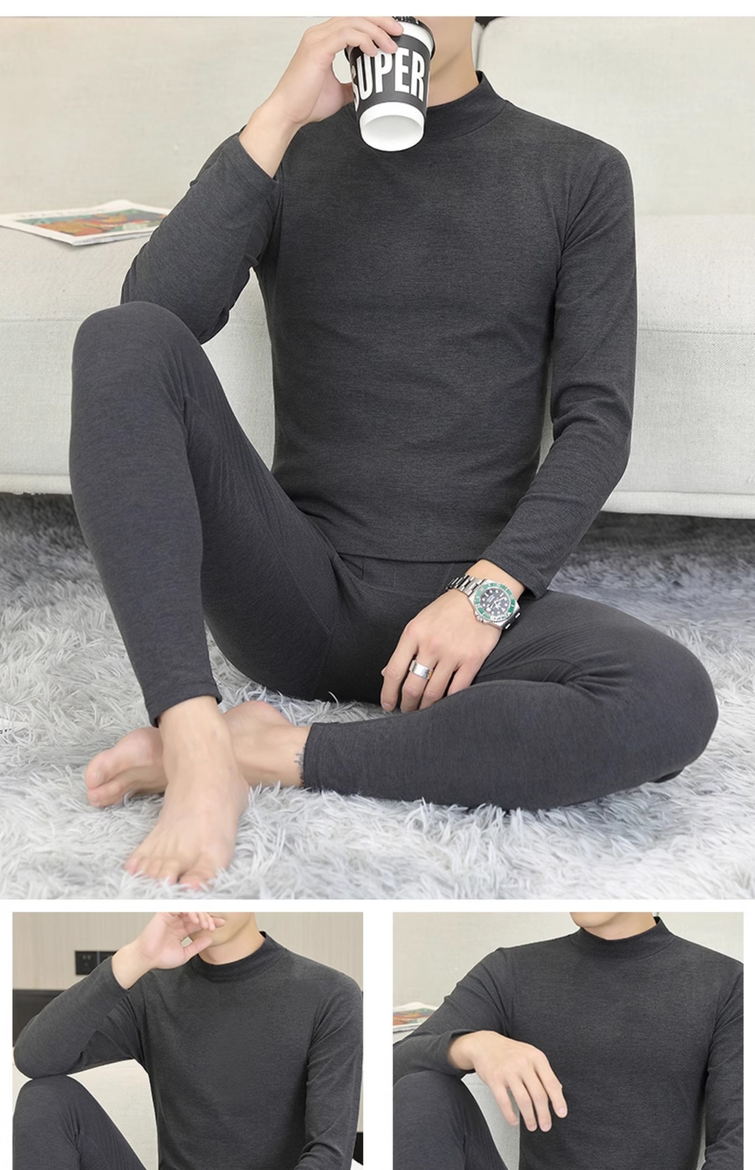 2025年冬用純綿秋服・秋ズボンセット メンズ ハーフタートルネック 保温下着 秋冬薄手インナー トレンド