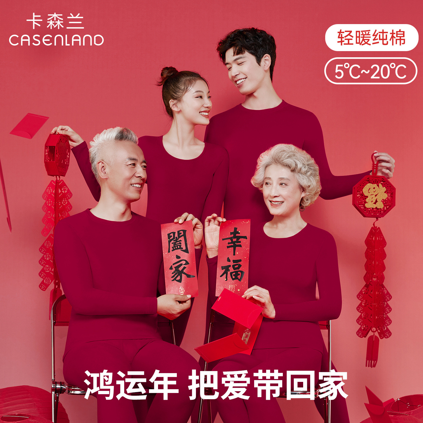 本命年马年酒红色秋衣秋裤a类纯棉轻薄暖男女棉毛衫爸妈保暖内衣