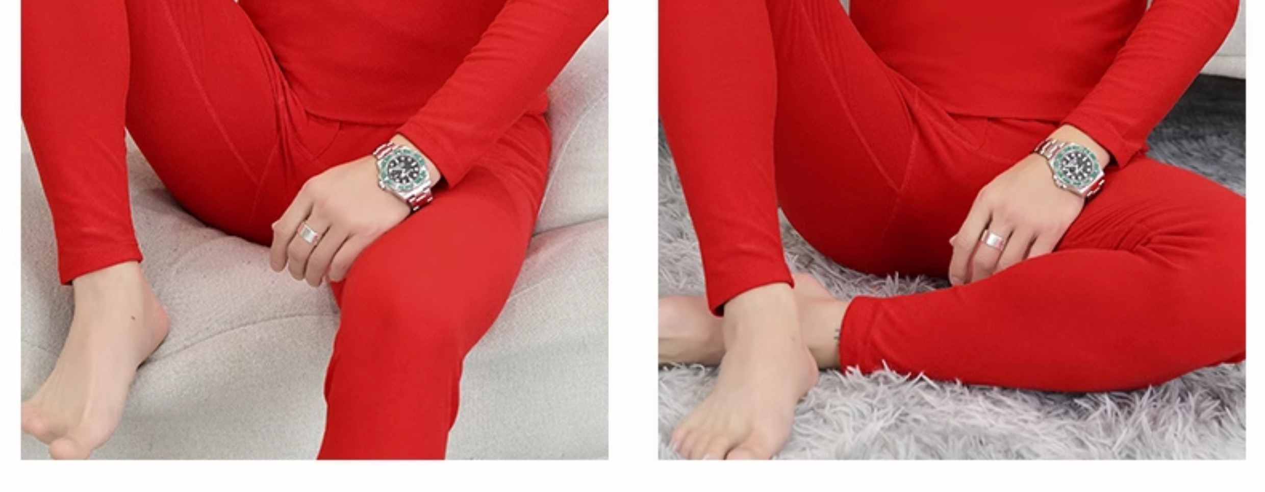 本命年の赤いベルベットの発熱に痕跡のない保温下着セット男性の冬には、秋の服の秋のズボンを厚くする