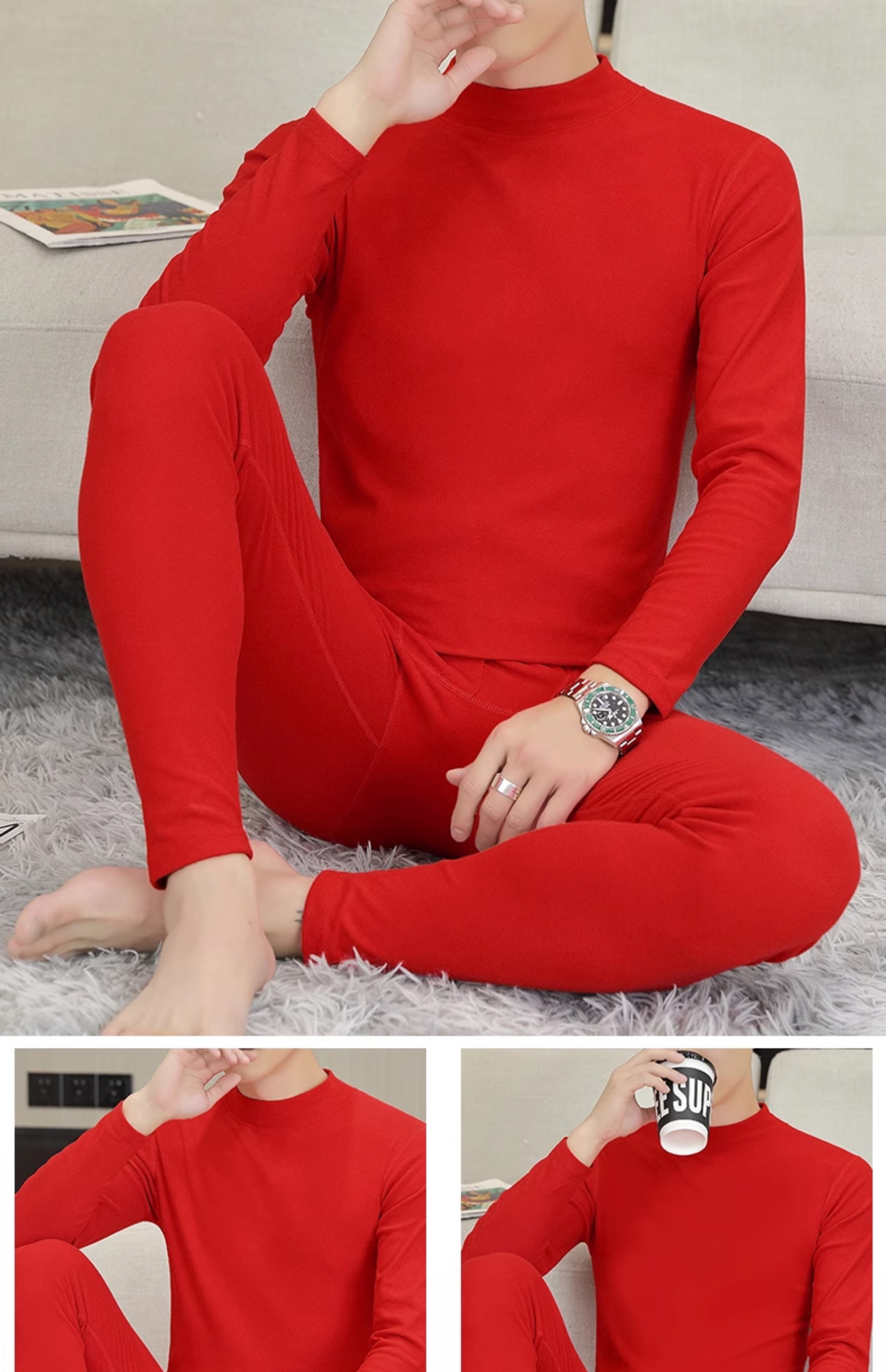 2025蛇年本命年服男性保温下着セットとベルベットの厚い赤い中襟秋衣秋ズボン