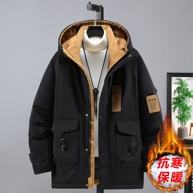 秋冬用特大サイズメンズ綿服、ゆったり版、ミドル丈、保温性のあるメンズ綿服、大きいサイズ、防寒