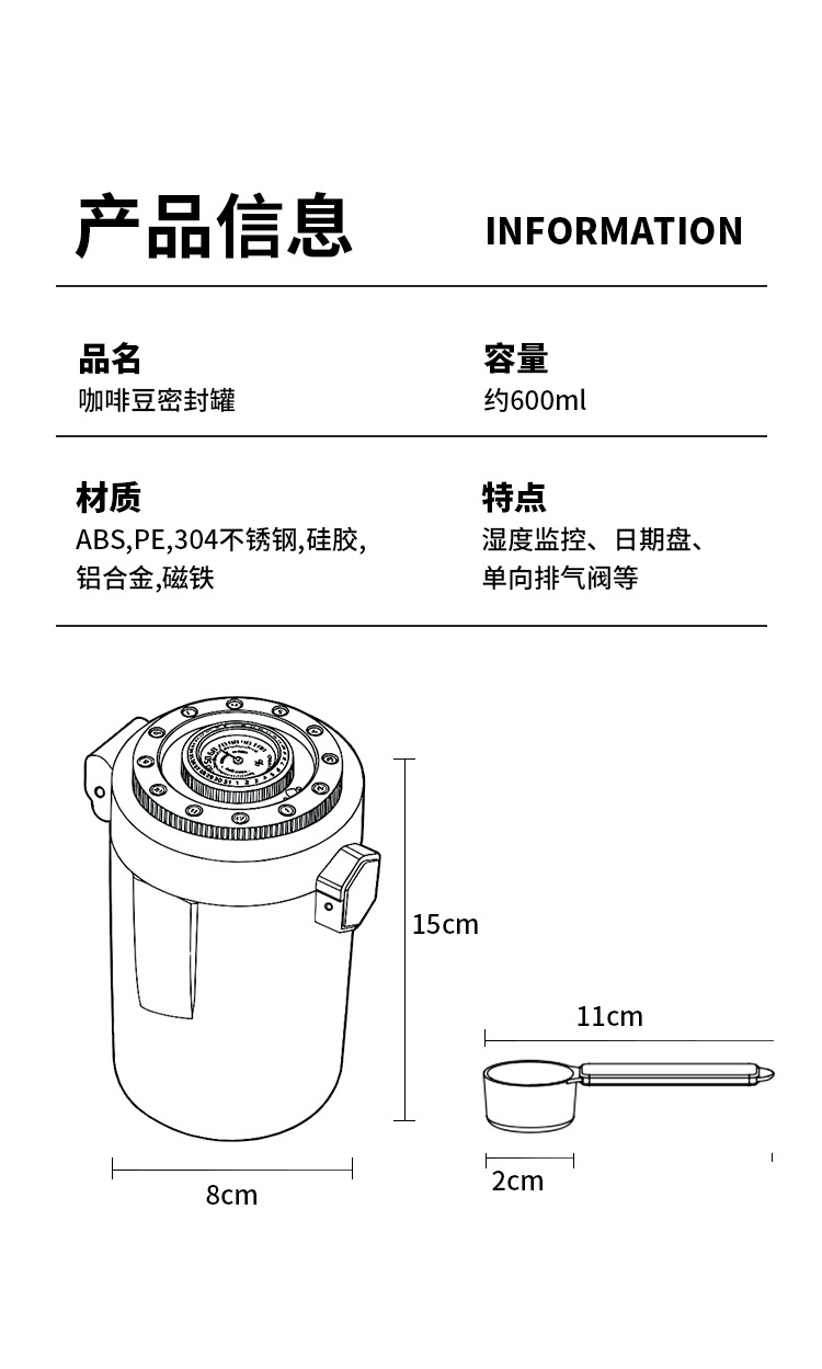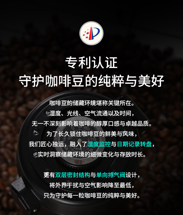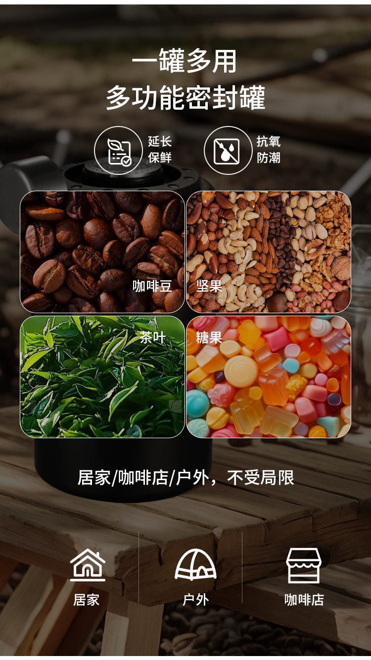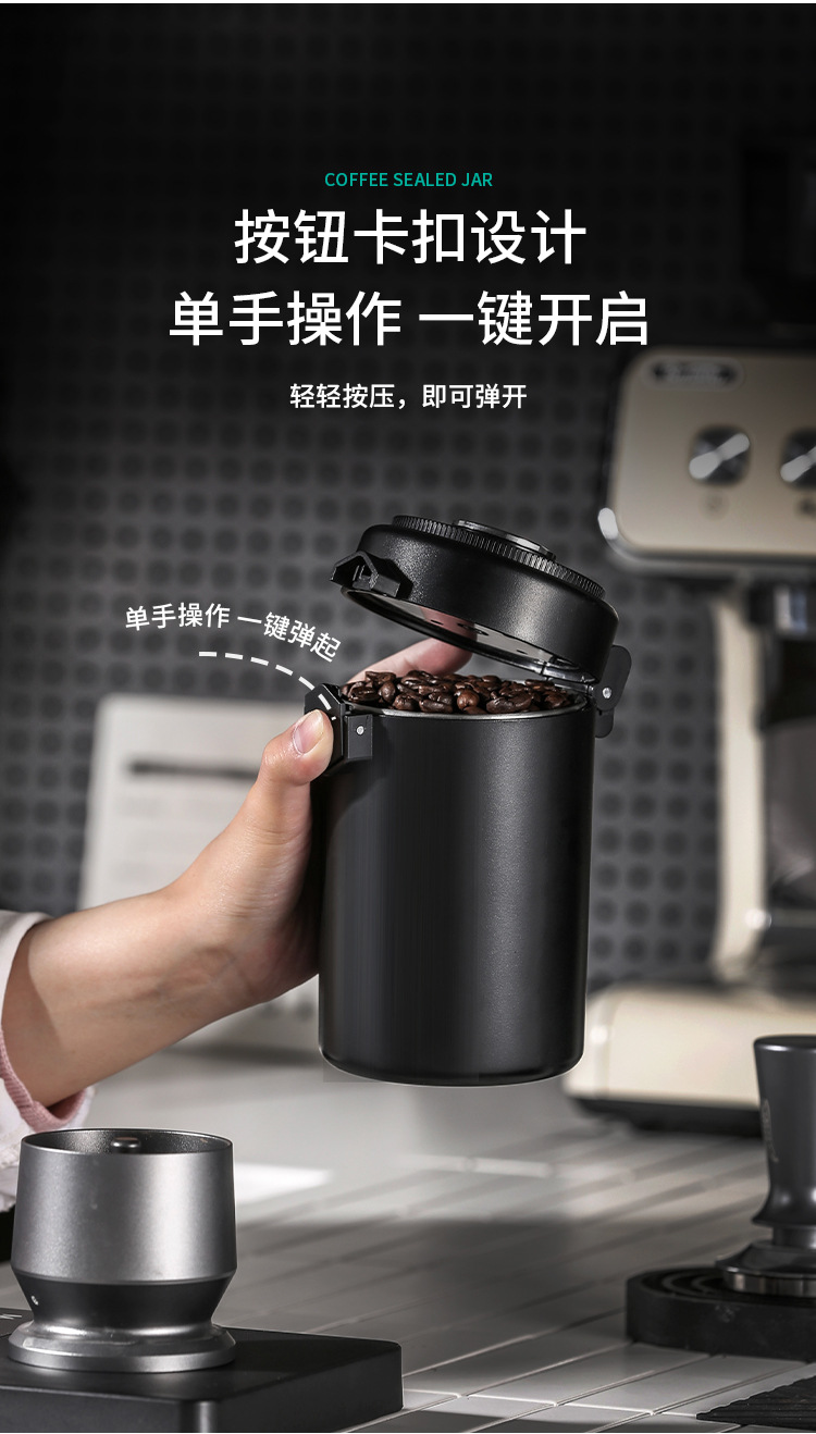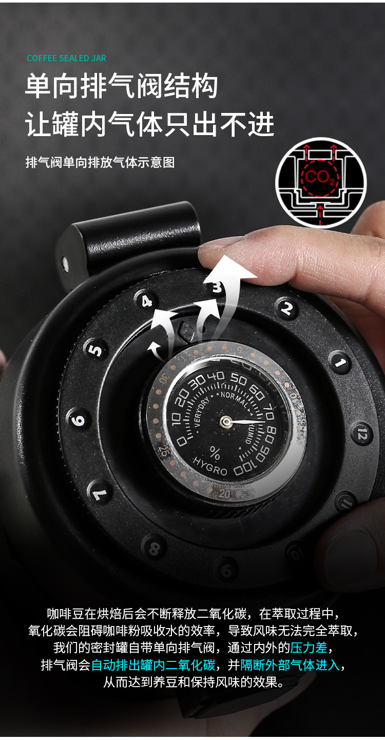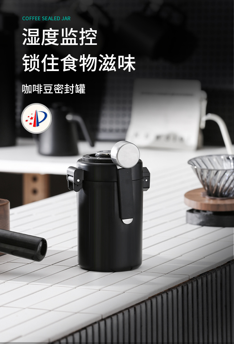 新品304咖啡豆密封罐真空单向排气湿度监测咖啡粉专用储物保存罐