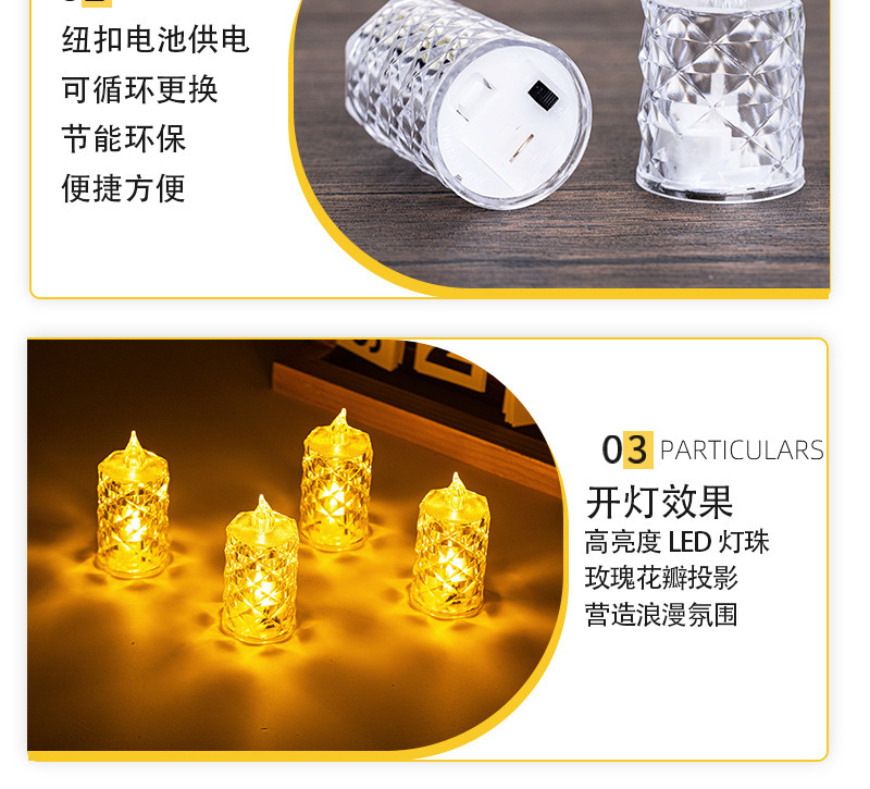 led电子蜡烛灯ins玫瑰茶蜡透明水晶小夜灯求婚氛围灯LED电子蜡烛