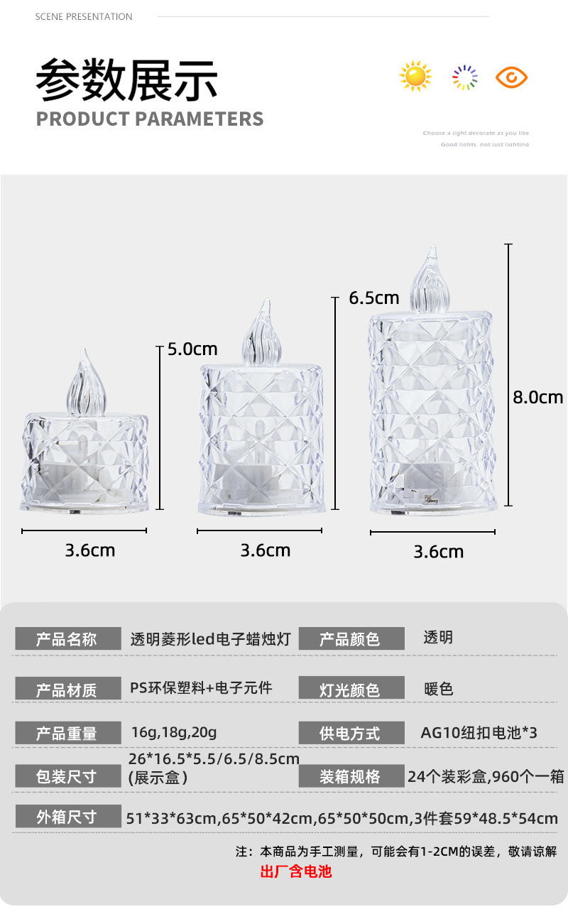 跨境水晶蜡烛仿真LED电子蜡烛灯小茶蜡道具灯圣诞节节日生日布置