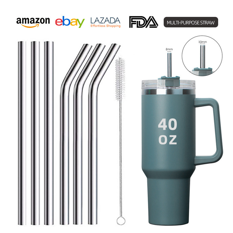 跨境亚马逊304不锈钢直管吸管 多功能旅行杯大口径弯管水杯吸管