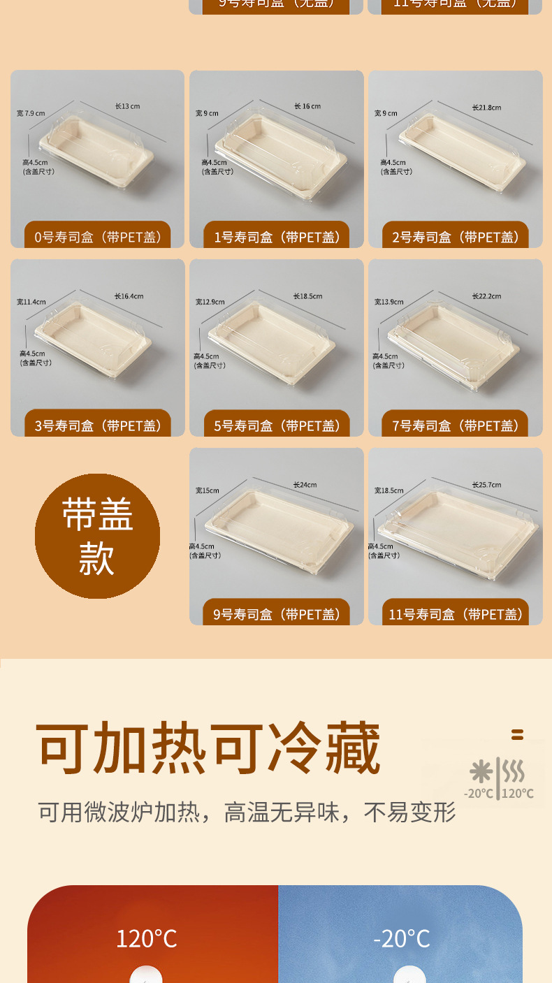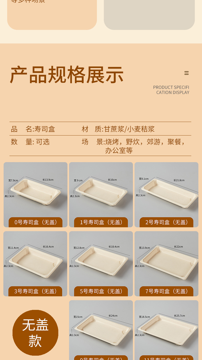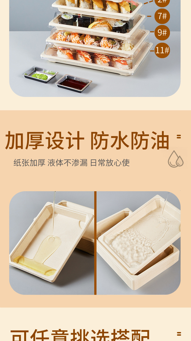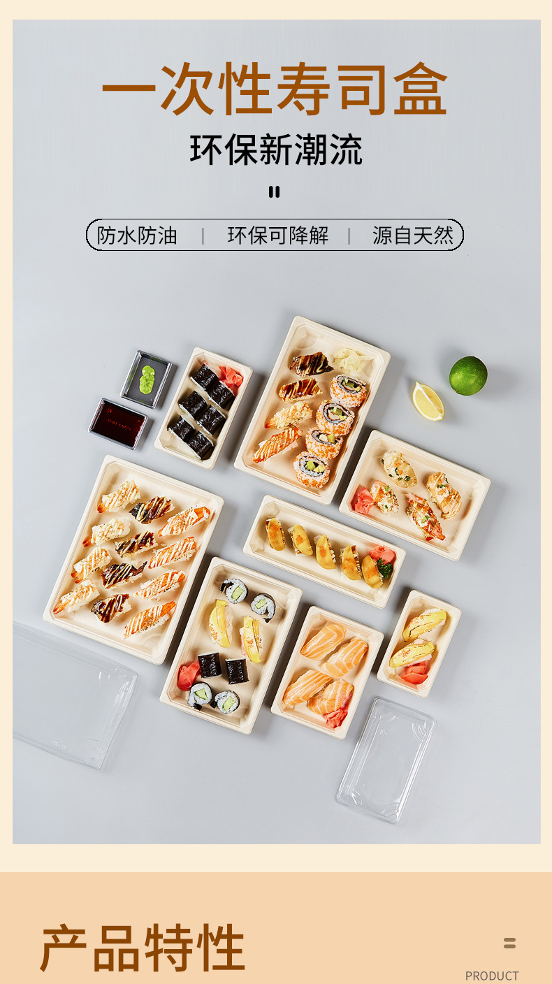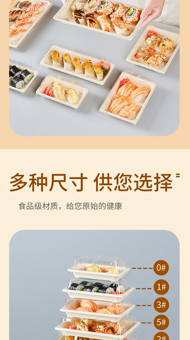 使い捨て寿司箱現物0号1号日本料理刺身包装箱環境保護分解可能長方形弁当箱