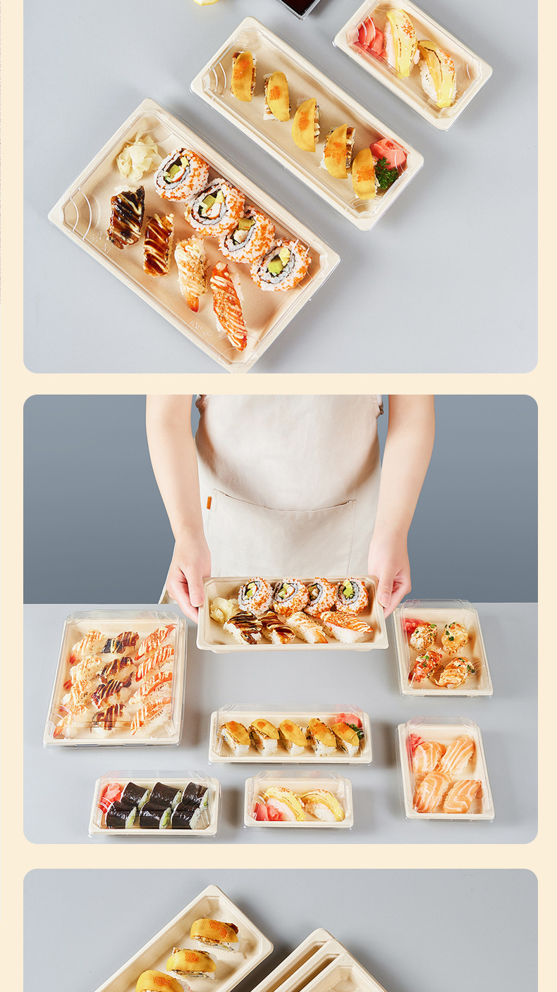 使い捨て寿司箱商用販売包装箱環境保護分解可能長方形日本式寿司皿包装弁当箱