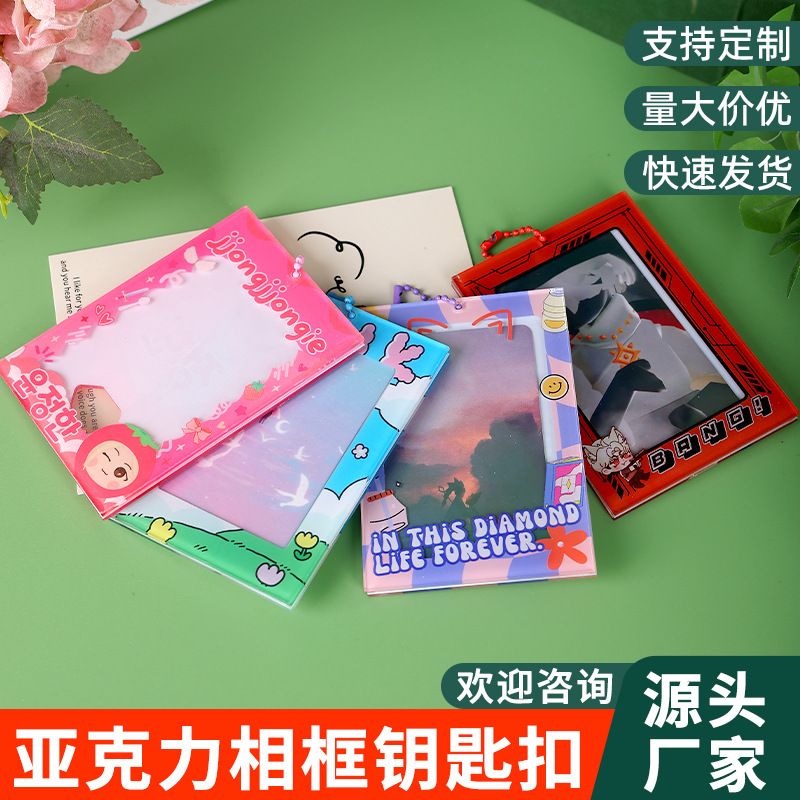 アクリルスライド蓋フォトフレームキーホルダーカスタム写真カードカバー収納ストラップ創意カバン掛け飾り