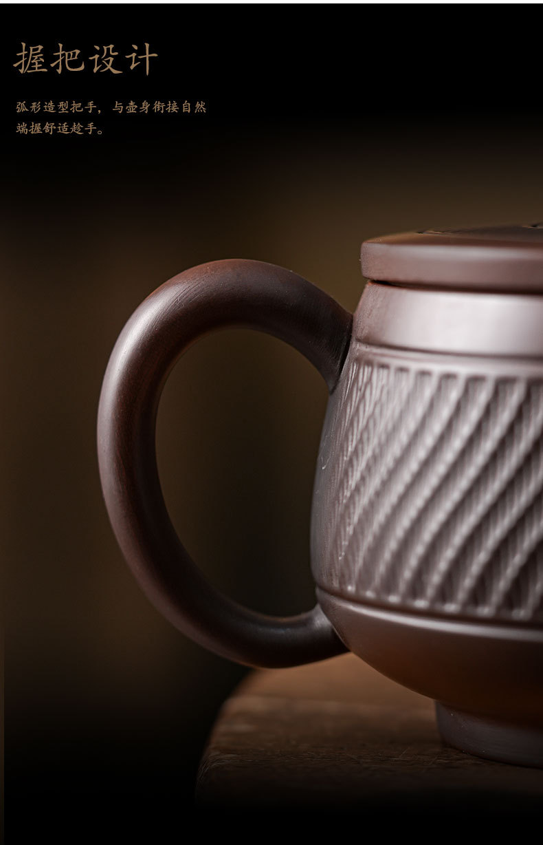 原矿手工紫陶跳刀纹汉瓦壶单壶大容量泡茶器家用办公礼品功夫茶具