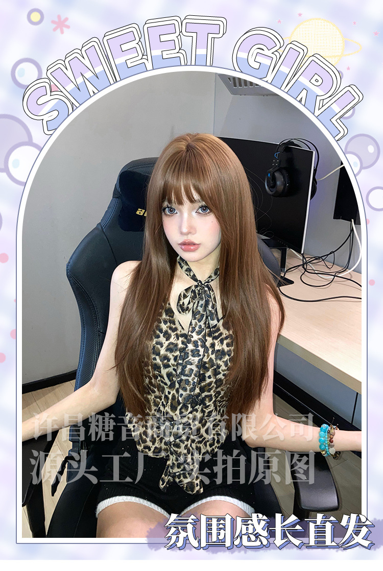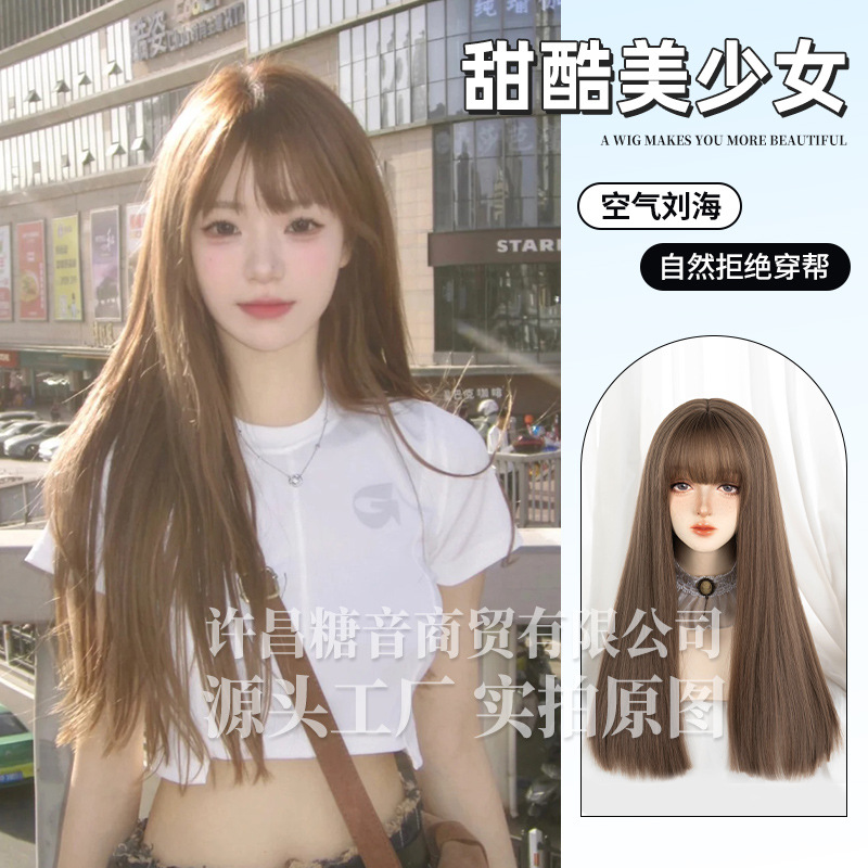 シュガーサウンドかつら女性ロングヘアナチュラル全体カバーロングストレート自然空気前髪かつらカバーネット赤ミディアムロング
