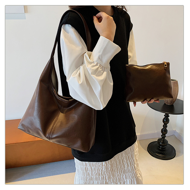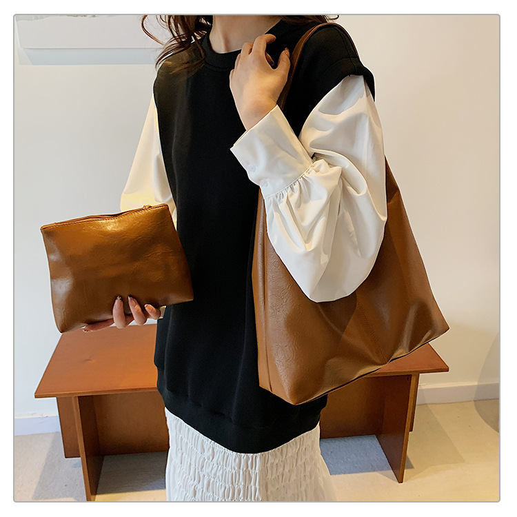 大容量バッグレディース2024新作韓国ファッションソフトレザー片肩脇下バッグ通勤子母トートバッグ