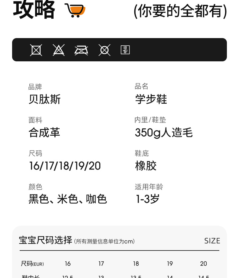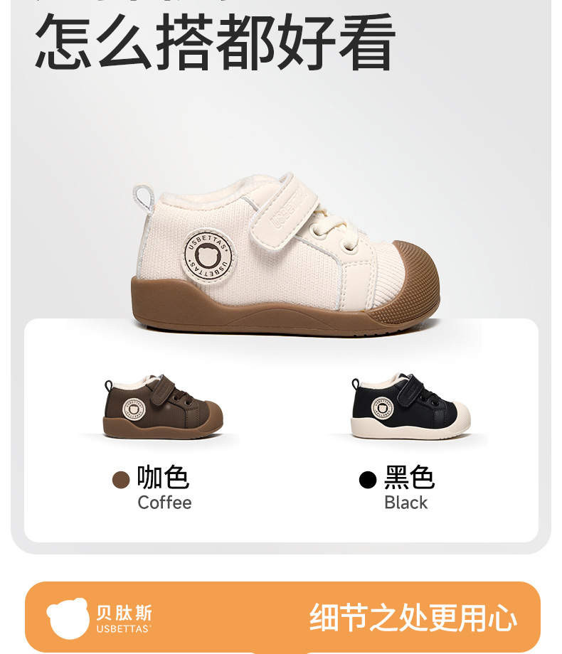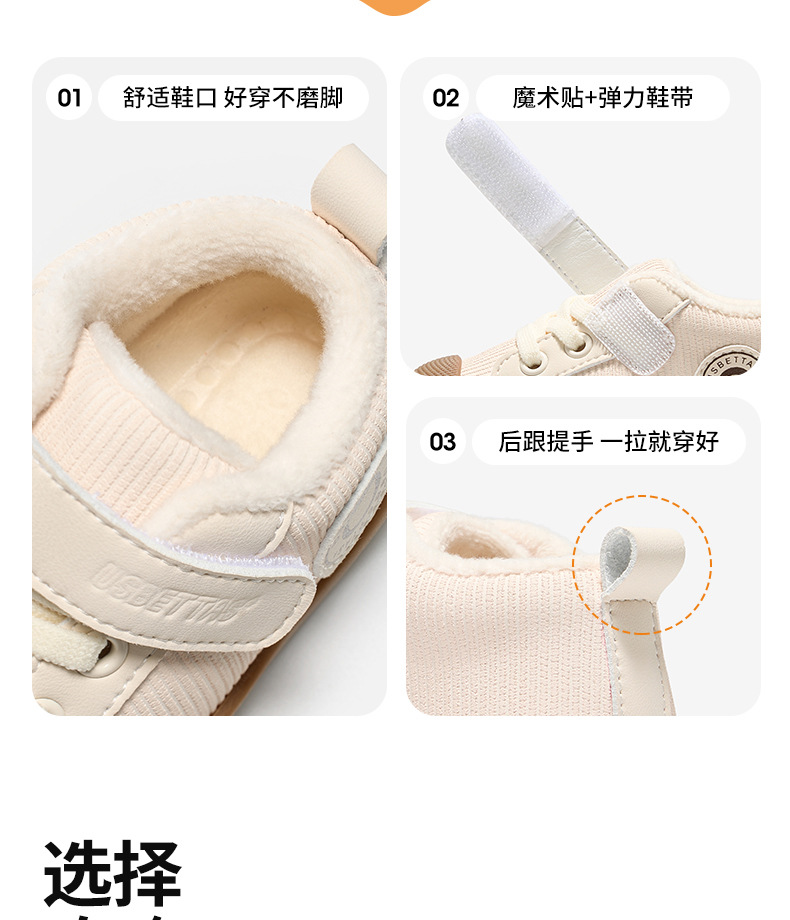 贝肽斯宝宝学步鞋春秋季加绒婴儿鞋子1-3岁男童女童鞋防滑机能鞋